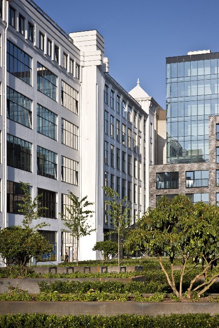 Naast de reconversie van het bestaande fabrieks- en kantoorgebouw werden eveneens nieuwe toevoegingen voorzien. Deze nieuwe elementen, het volume aan de Mathildelaan en de nieuwe volumes aan de zijde van het Lichtplein en Emmasingel, werden uitgevoerd met eenzelfde tektoniek, met eenzelfde gevelbehandeling. Enerzijds werd gekozen voor glazen gevels. Anderzijds werd gekozen voor gevels in metselwerk met diepe negge.