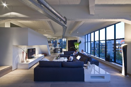 De specifieke monolithische betonstructuur (Hennebique-systeem) werd hierbij zichtbaar gemaakt en waar nodig hersteld. Na herstelling van de betonnen structuur wordt deze stofvrij gemaakt door het aanbrengen van een transparante coating waaraan een weinig grijs pigment is toegevoegd. Nutsleidingen en andere technische voorzieningen worden geplaatst in verhoogde vloeren of zichtbaar aan de plafonds opgehangen; verlaagde plafonds worden vermeden. De betonstructuur is de basis voor de afwerking van het interieur.