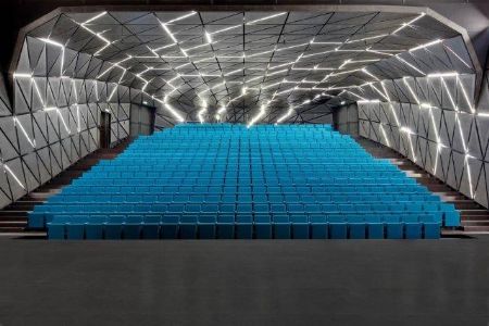 Om van het geklasseerde voormalige postgebouw ontworpen in 1945 door architect Gaston Eysselinck een bruisend cultuurhuis te maken en maximaal te verankeren in haar omgeving stelt B-architecten voor om in het hart van het gebouw een publieke ruimte –een amfitheater- te positioneren. Onder dit plein bevindt zich de grote theaterzaal. Deze grote zaal biedt plaats aan meer dan 400 personen en is direct bereikbaar vanuit de de voormalige lokettenzaal.