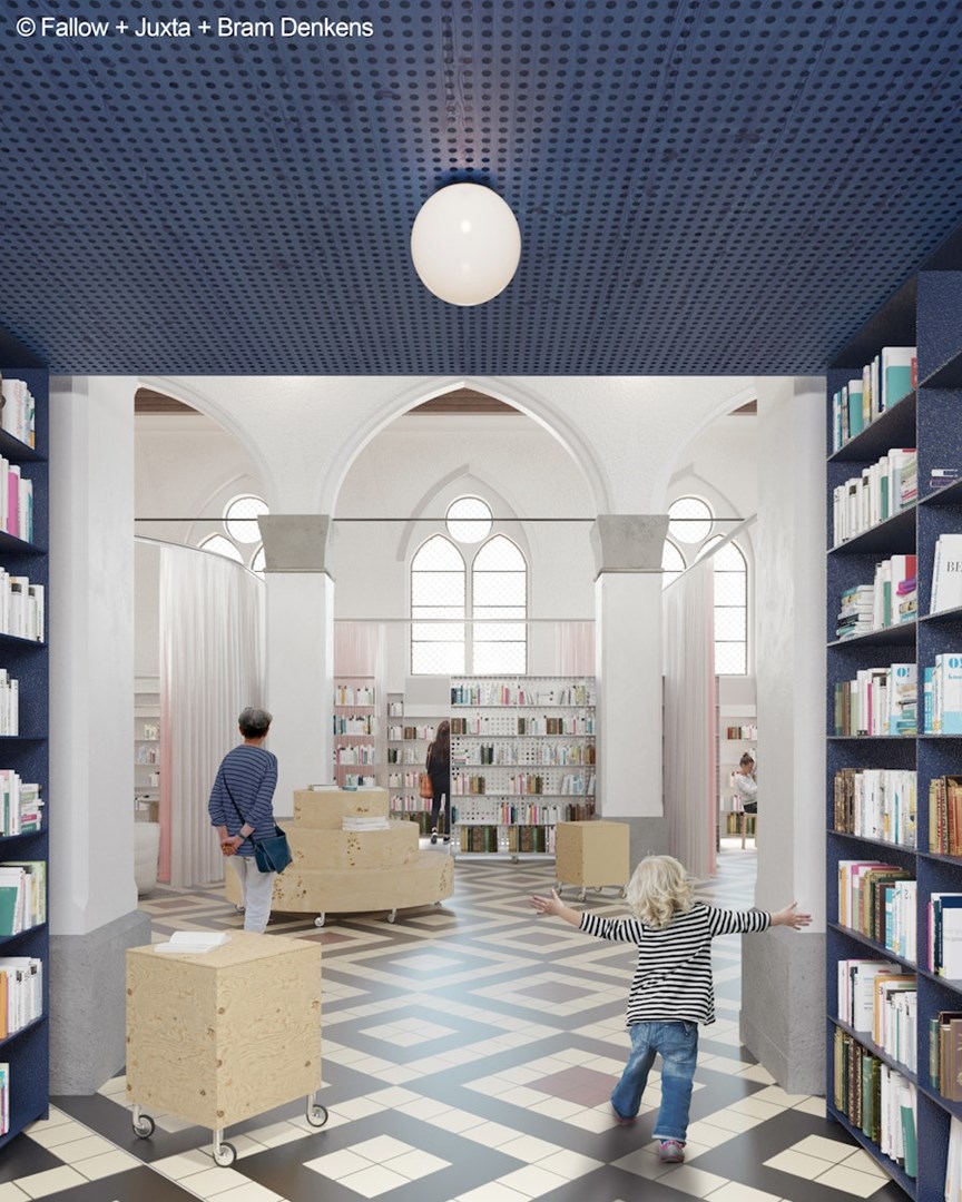 B-juxta, Fallow en ACME transformeren Sint-Pieterskerk De Panne tot bibliotheek van de toekomst