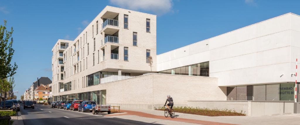 Terwijl de geplande sloop van het oude zwembad van Oostende op verzet stuit, heeft intussen het nieuwe zwembad Brigitte Becue haar deuren geopend. B2Ai en VenhoevenCS tekenden een olympisch bad met multifunctioneel instructiebad en een grote recreatieve zone. Bovenop dit zwemcomplex zijn 22 sociale appartementen ingeplant. De architectuur zoekt naar lichtheid en een open karakter, met tinten die afgestemd zijn op de nabije omgeving. Ook Ney & Partners (stabiliteit), boydens engineering (technieken en bouwfysica) en KWB (zwembadtechniek) werkten mee aan dit project.