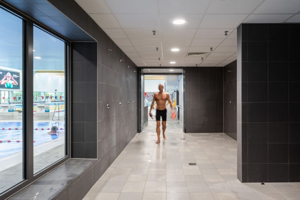 Het nieuw stedelijk zwembad – gebouwd in opdracht van Sportbuilders nv, Stad Oostende en FARYS/TMVW - is onderdeel van een sportieve cluster in de stad: renbaan, golf, basket arena en voetbalstadion. De site is goed bereikbaar met alle vervoersmodi en ligt op de overgang tussen het meer residentiële Oostende en de kuststrook. Het ontwerp tracht deze overgang ook ruimtelijk te vertalen op de site.
