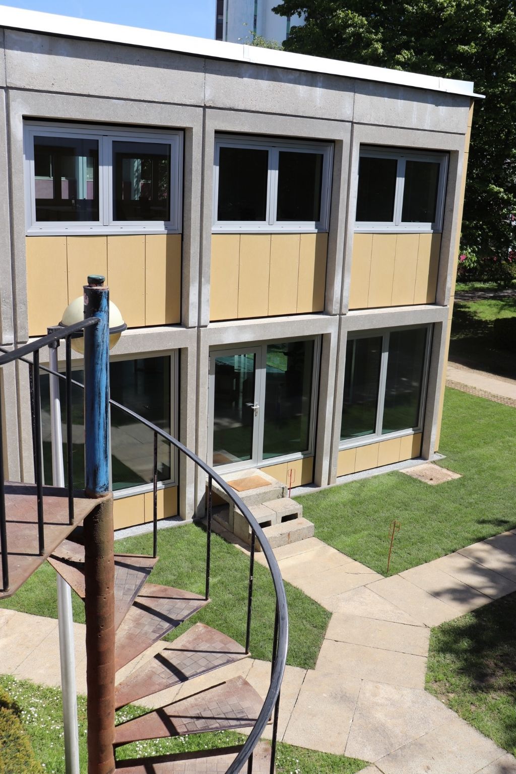 Voor ons pilootproject was het zeer belangrijk dat we op een reële case study werkten om omkeerbaar bouwen uit te testen. Dit deden we in het Circular Retrofit Lab, een transformatie van de bestaande studentenkoten in het hart van de VUB-campus tot publieke functies die kunnen verder evolueren in de nabije toekomst. We wilden aantonen dat mogelijke extra investeringskosten van transformeerbaar bouwen op lange termijn met economische winsten kan worden teruggewonnen. Het ging om een renovatie met een zeer beperkt budget, waardoor we innovatieve samenwerkingen aangingen met de industrie. We zijn ook gaan kijken naar de typologieën die typisch zijn in België en hoe we onze technieken kunnen opschalen naar de overige 300 koten en vervolgens naar andere gebouwen in België, zoals leegstaande kantoren in Brussel.