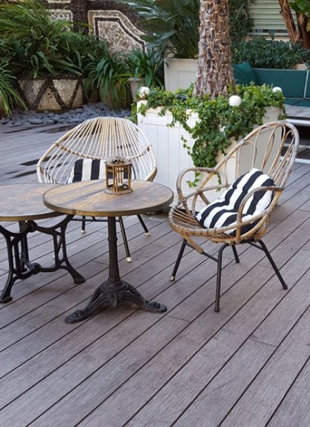 Voor horeca of andere publieke terrassen wil men vaak het uitzicht van een nieuwe plank behouden. Dat kan eenvoudig door de planken jaarlijks of volgens noodzaak te behandelen met Woca Exterior Wood Oil in de kleur Teak of Walnut.