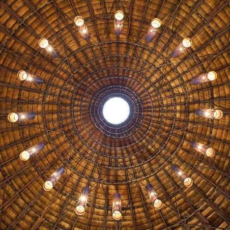 Vo Trong Nghia: Bamboe heeft eigenschappen die uniek zijn, wat ook resulteert in unieke structuren en ruimtes. Het is niet makkelijk om mooie ruimtes te creëren met bamboe, omdat het materiaal niet egaal is. We proberen de nauwkeurigheid van de constructie te controleren door het gebruik van voorgemaakte frames.