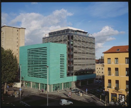 Ongeacht de aanwezigheid van een bankfiliaal op het gelijkvloers, werd het ontwerp aangepast. Een kantoorblok met 5 bouwlagen werd toegevoegd.