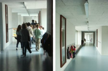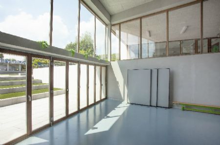Tot slot zorgde de low-cost ingreep die een link tot stand brengt van de turnzaal via het amfitheater met de buitenruimte dat de school op spontane wijze een breder maatschappelijk draagvlak heeft gekregen. Ook het sobere en consequent materiaalgebruik en de doordachte detaillering kon de jury van de Arch School Awards bekoren.
