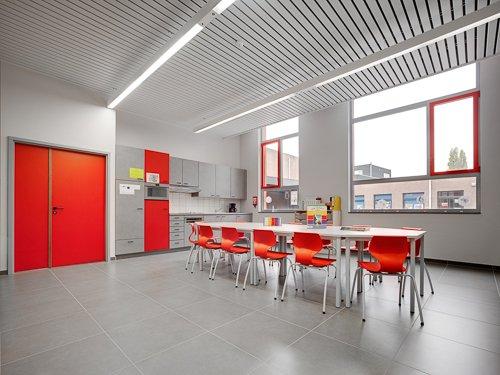 Basisschool Tilia – zo genoemd vanwege de mooie oude lindebomen op de speelplaats - kreeg onlangs een grondige makeover. Met een beperkt budget gaf architect Fred Vrebos van ArchitectuurGroep Oosthoven (AGO) uit Oud-Turnhout het schooltje meer ruimte en een kleurrijke nieuwe look. De BL-plafonds van LCC passen perfect binnen het ontwerp en zorgen bovendien voor een aangename akoestiek.