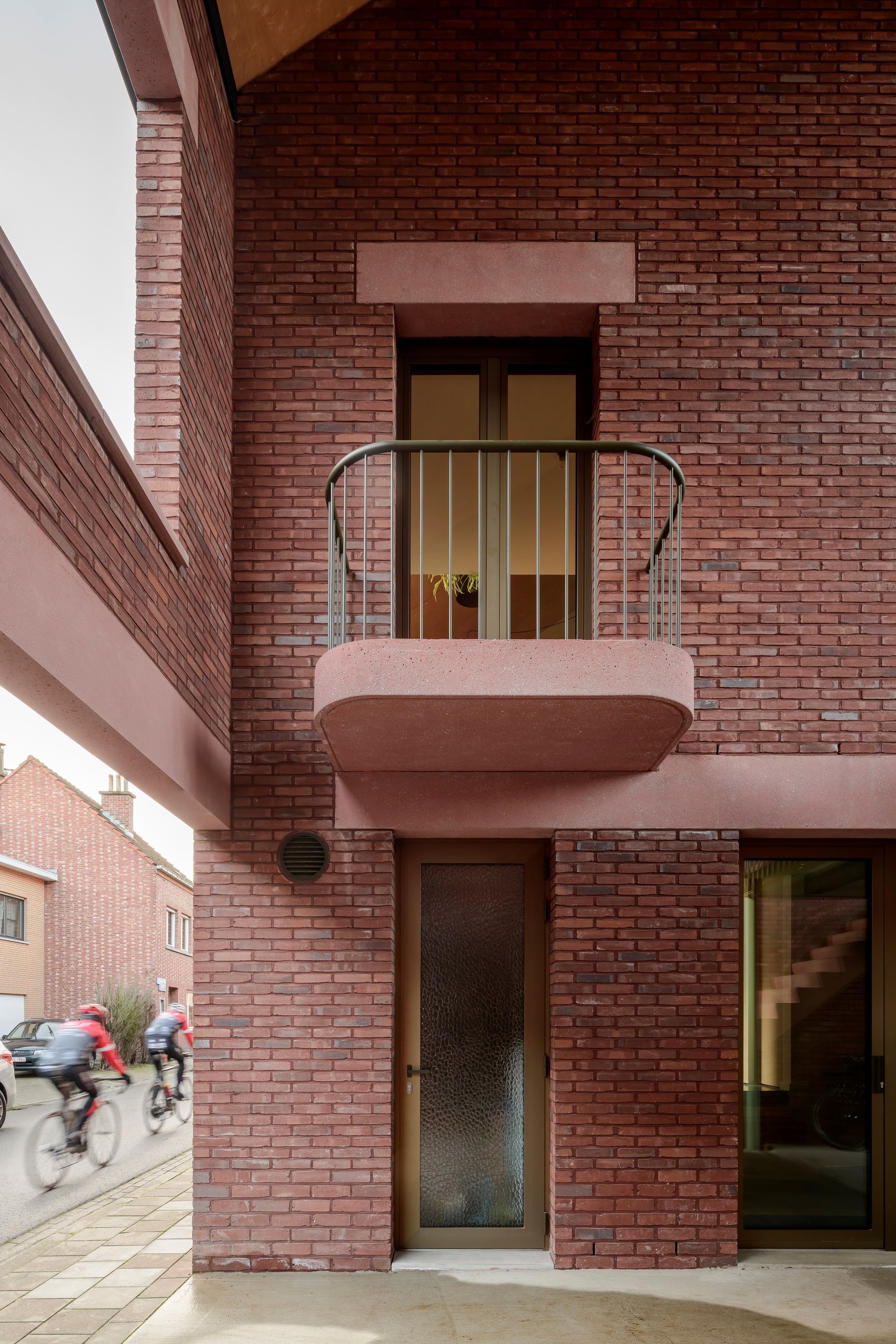 In Leuven ontwierp Carton123 architecten een collectief woonproject waar twee familiegeneraties zorgen voor elkaar. Dankzij een slimme schakeling van wooneenheden konden de ontwerpers vijf woningen creëren op een perceel waarop voorheen slechts één woning met garage stond, zonder dat het gebouw een overmaatse monoliet in het dichte stadsweefsel wordt. Het gebouw past naadloos in de straat met eerder smalle rijwoningen, maar krijgt door de herkenbare gevel in baksteen en roze beton toch een duidelijk adres in de stad. Lambda-max stond in voor de stabiliteitsstudie. Het project werd bekroond met de eervolle vermelding in de categorie Groepswoningbouw op de Belgian Building Awards 2022.