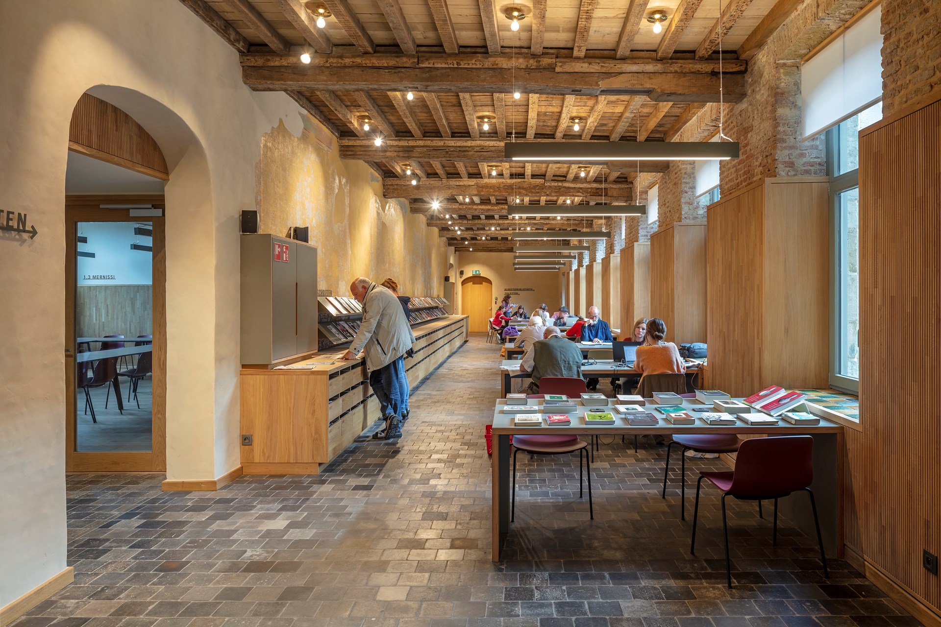Na meer dan veertig jaar leegstand opende het Predikherenklooster in Mechelen in 2019 weer de deuren. Maar niet voor nonnetjes en paters, het monumentale pand kreeg een herbestemming als stadsbibliotheek. Het gebouw herbergt ook een restaurant, vergaderzalen en leslokalen. De reusachtige zolder met imposante dakconstructie uit houten balken vormt het meest indrukwekkende gedeelte van de nieuwe culturele hotspot. Voor de restauratie werkte de stad samen met Korteknie Stuhlmacher Architecten, dat op zijn beurt samenwerkte met Callebaut-architecten, Bureau Bouwtechniek en de studiebureaus ABT en RCR. Het project kreeg een eervolle vermelding op de Belgian Building Awards 2022 in de categorie Herbestemming.