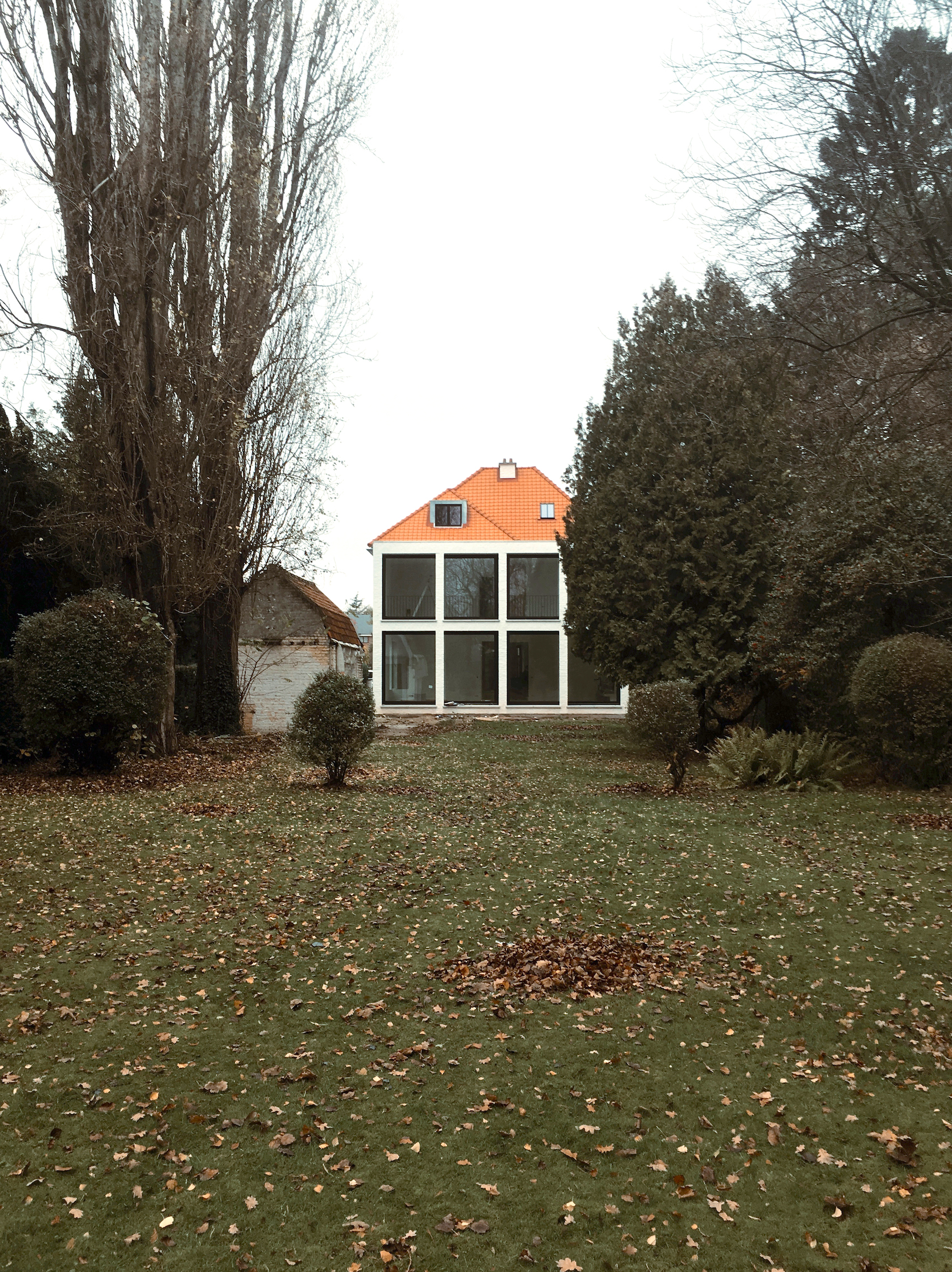 De uitbreiding bevindt zich aan de achterzijde van het gebouw en stelt zich sober en respectvol op ten opzichte van het bestaande volume. Het gekozen materiaal is een echo van de bestaande witte baksteen, die opnieuw wordt geïnterpreteerd. De ingreep bevestigt het bestaande, eerder dan het in vraag te stellen. Deze ontwerphouding is geïnspireerd op Paul Klee's restauratie van het schilderij ‘Lot der dieren’ van zijn overleden vriend Franz Marc, dat hij schilderde op de manier van zijn vriend.