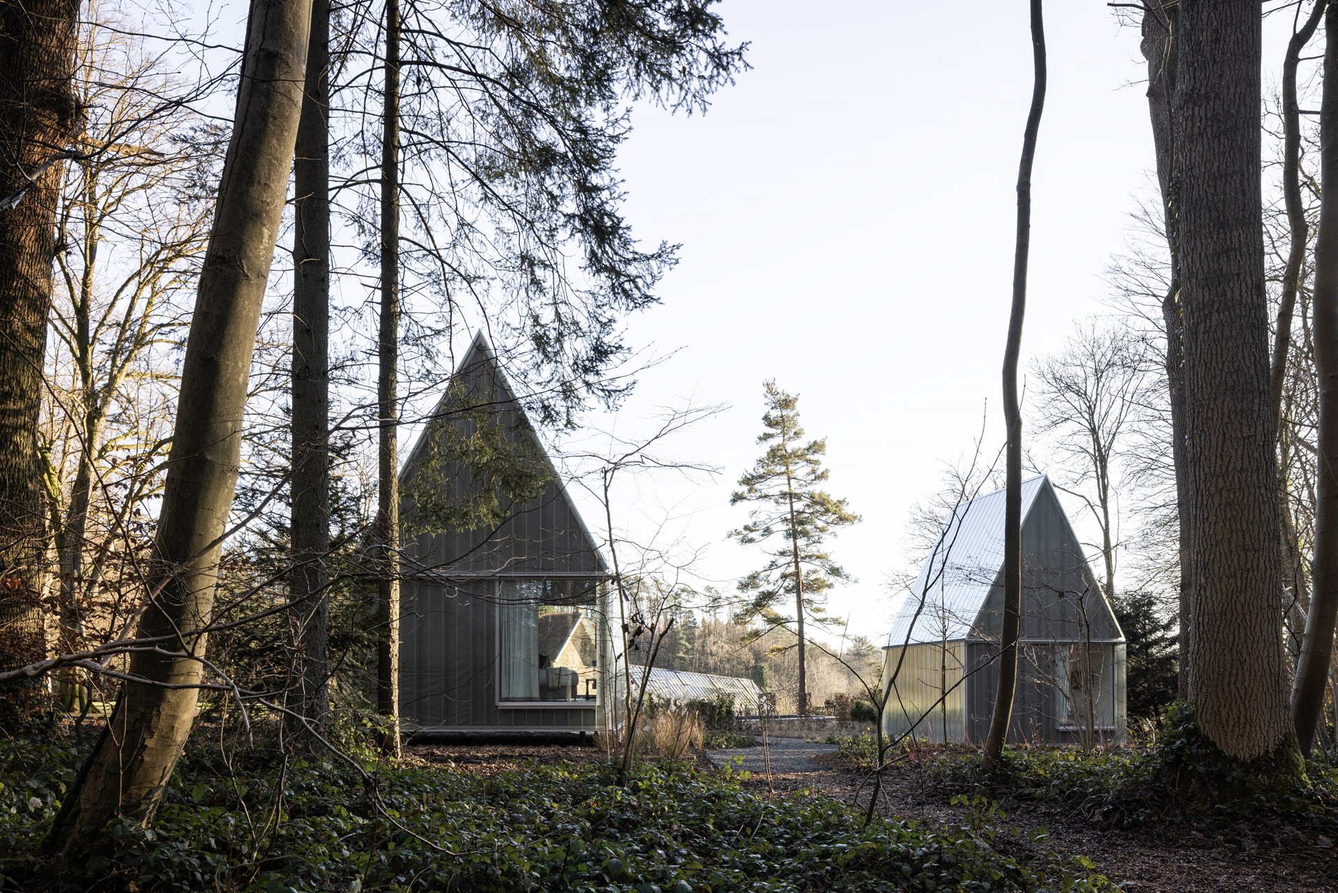 Op de hoogtes van het terrein zijn de wooneenheden toegankelijk via het bestaande pad. De accommodaties versterken de aanwezigheid van de serre en leren ervan, zowel door de serre te gebruiken als programmatische aanvulling voor de gastenverblijven als door het constructieve systeem te herinterpreteren. Elke unit is op palen geplaatst en ontworpen om gemakkelijk gedemonteerd te kunnen worden om de locatie veerkrachtig te houden. De materialiteit van de gevel weerspiegelt de vroegere aanwezigheid: het geprofileerde U-glas gaat door zijn reflectie en proporties een dialoog aan met zowel de bestaande utilitaire structuur als met de omgeving.