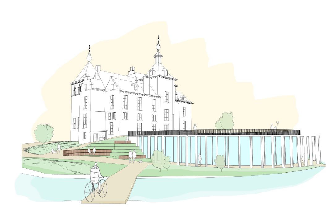 Het gemeentebestuur van Wemmel wenst in het historische gemeentehuis, het kasteel, haar administratieve diensten centraliseren. Het kasteel en het bijhorende park is beschermd erfgoed en moet in ere bewaard blijven. In het goedgekeurde ontwerp past het nieuwe volume zich volledig aan de omgeving aan. Er wordt gebruikgemaakt van de niveauverschillen die aanwezig zijn in het park. De nieuwe aanbouw werkt als een uitbreiding van de bestaande sokkel van het kasteel. Daarbij wordt ook gezorgd dat de bestaande connecties tussen de wandelpaden in het park niet verloren gaan. Er wordt zelfs een nieuwe brug geplaatst zodat de paden in het park nog meer connecteren. Het gebouw wordt als het ware onder de parkaanleg geschoven. Rondom de aanbouw wordt een passerelle voorzien die toelaat aan bezoekers van het park om rond het gebouw en langs de vijver te lopen.