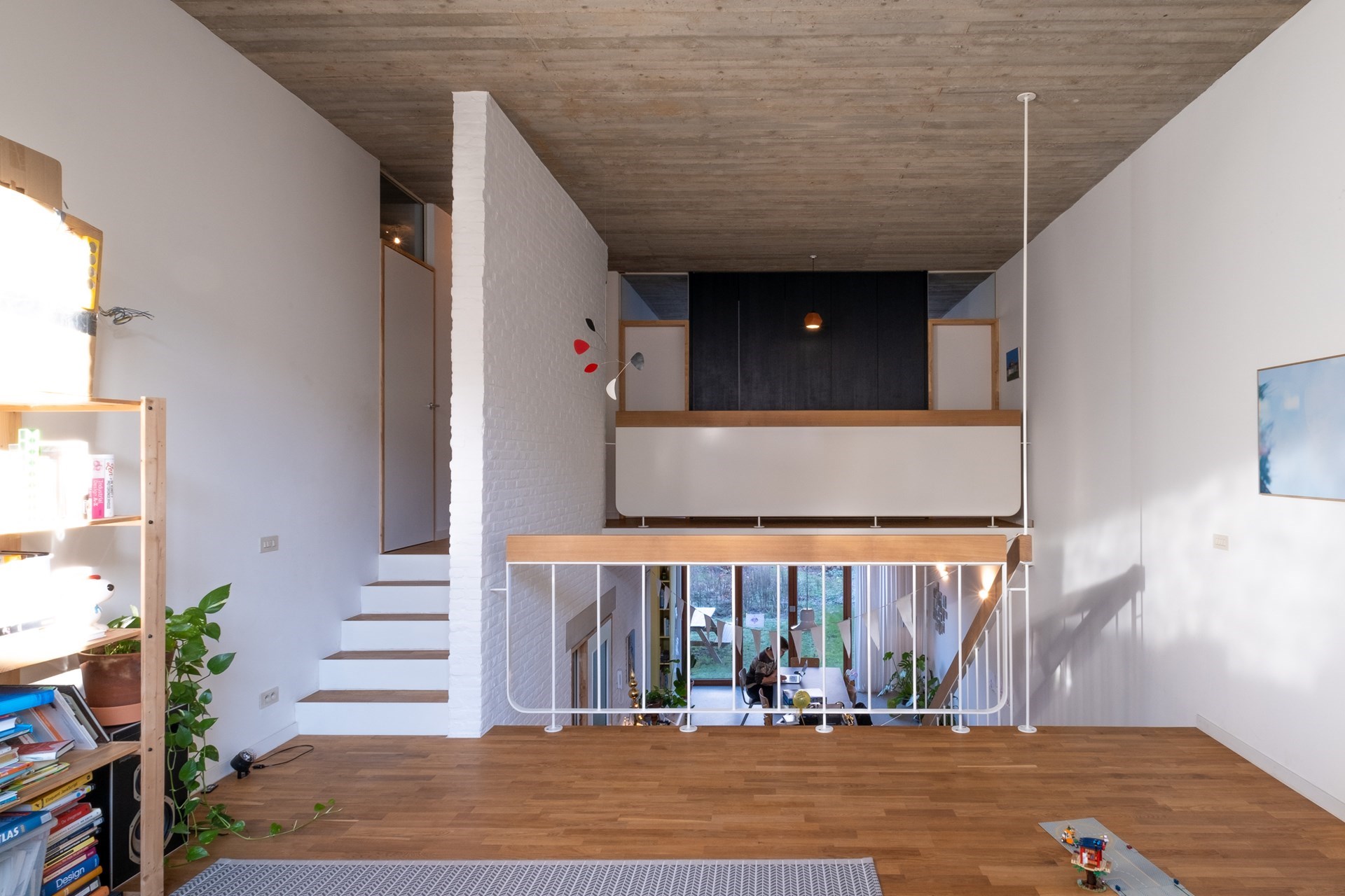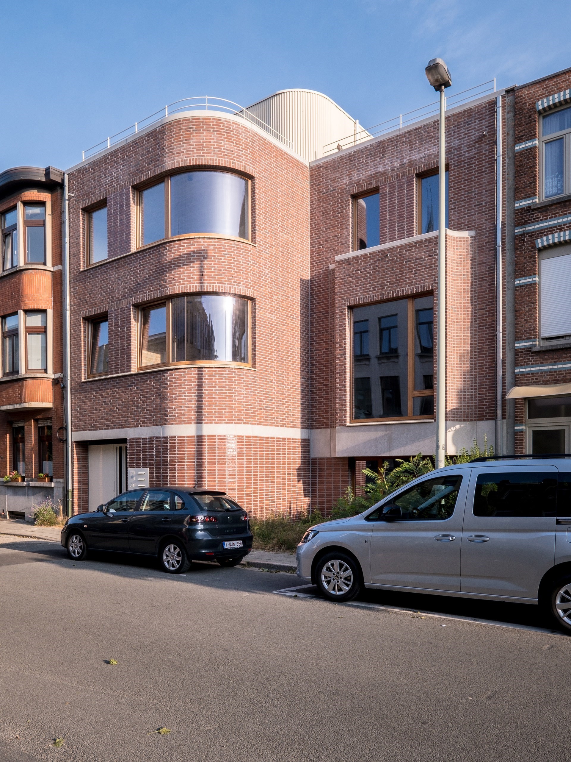 De woning ligt in een typische 20e-eeuwse Antwerpse woonstraat: fraaie eengezinswoningen in protomodernistische of art-deco stijl in lage dichtheid en met grote tuinen. Het doel van het project: een ruimtelijke interessante puzzel maken van verspringende verdiepingen, een vide, een bijzonder trappenhuis en fijne dakterrassen.