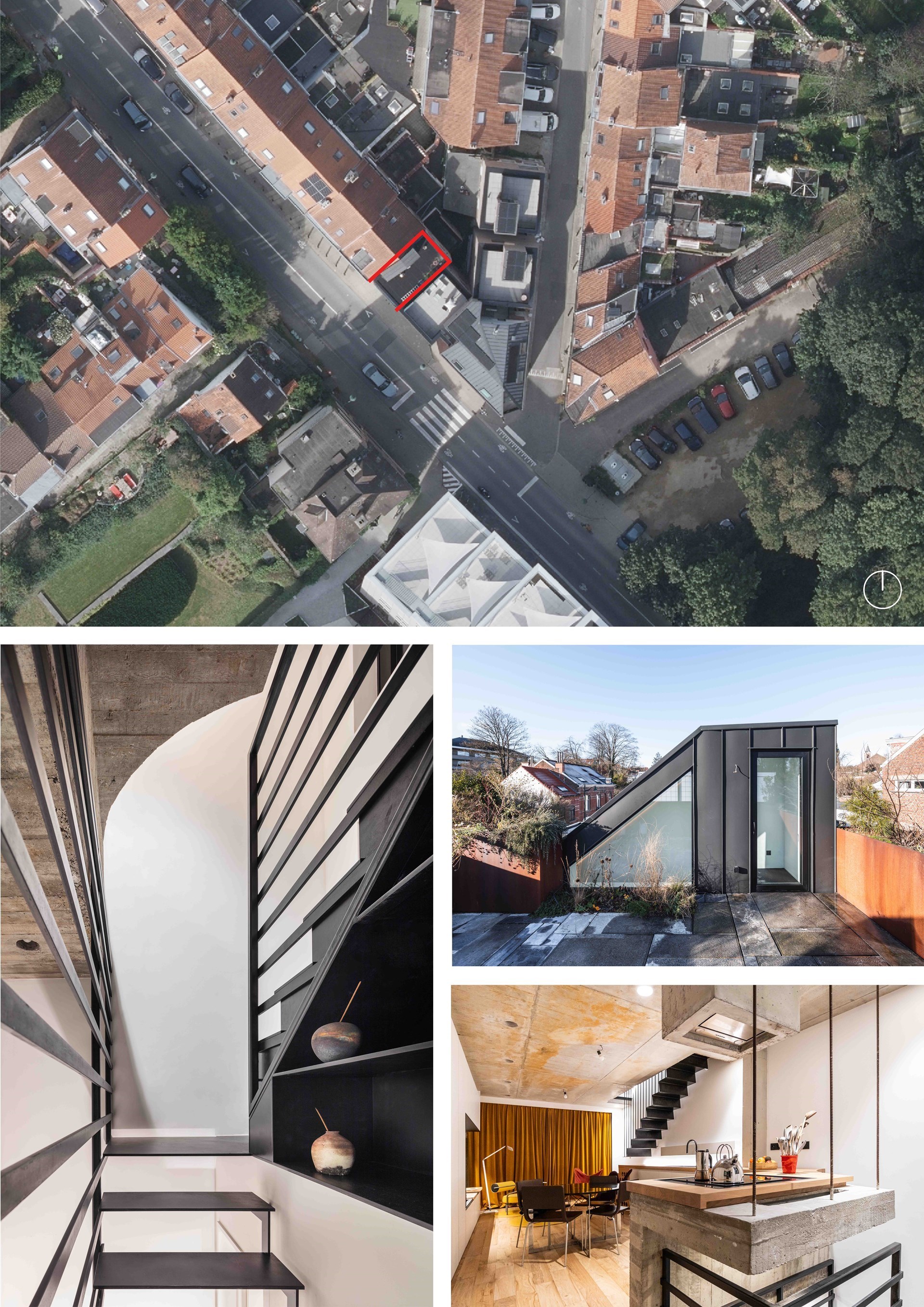 In Oudergem stond EDA–AU in voor het ontwerp van een eengezinswoning met twee gevels. Met een breedte van minder dan vier meter en een diepte tussen de acht en tien meter, plus twee meter tuin, volgt het de lijnen van de volumes van de naburige woningen. De woning bestaat uit twee gevels, maar geniet vanuit één gevel van direct licht en uitzicht op het landschap. Het architectenbureau ontwierp een gebouw in een U-vorm waarvan de vide uitkijkt op het begroeide gebied boven de rijweg.