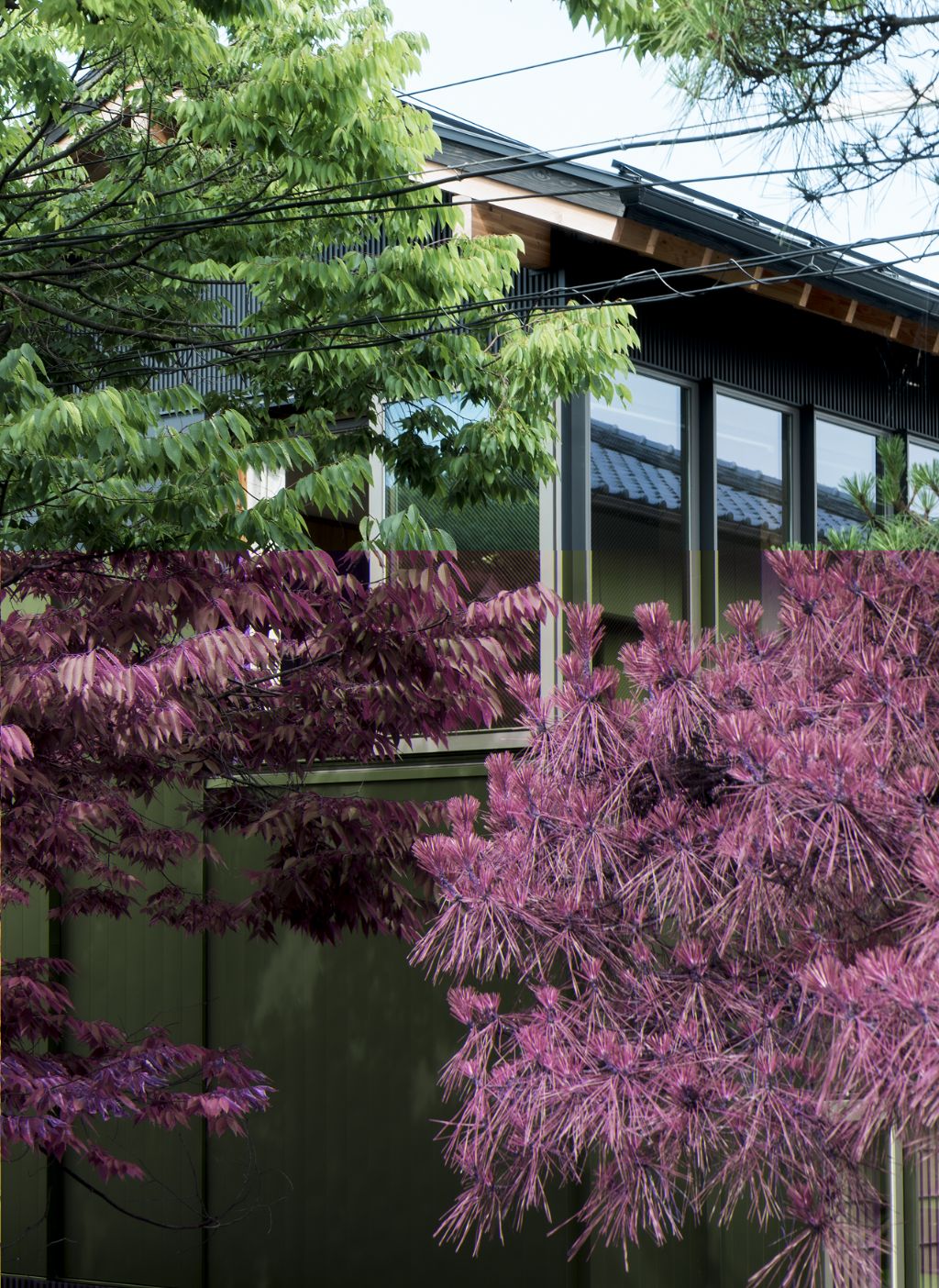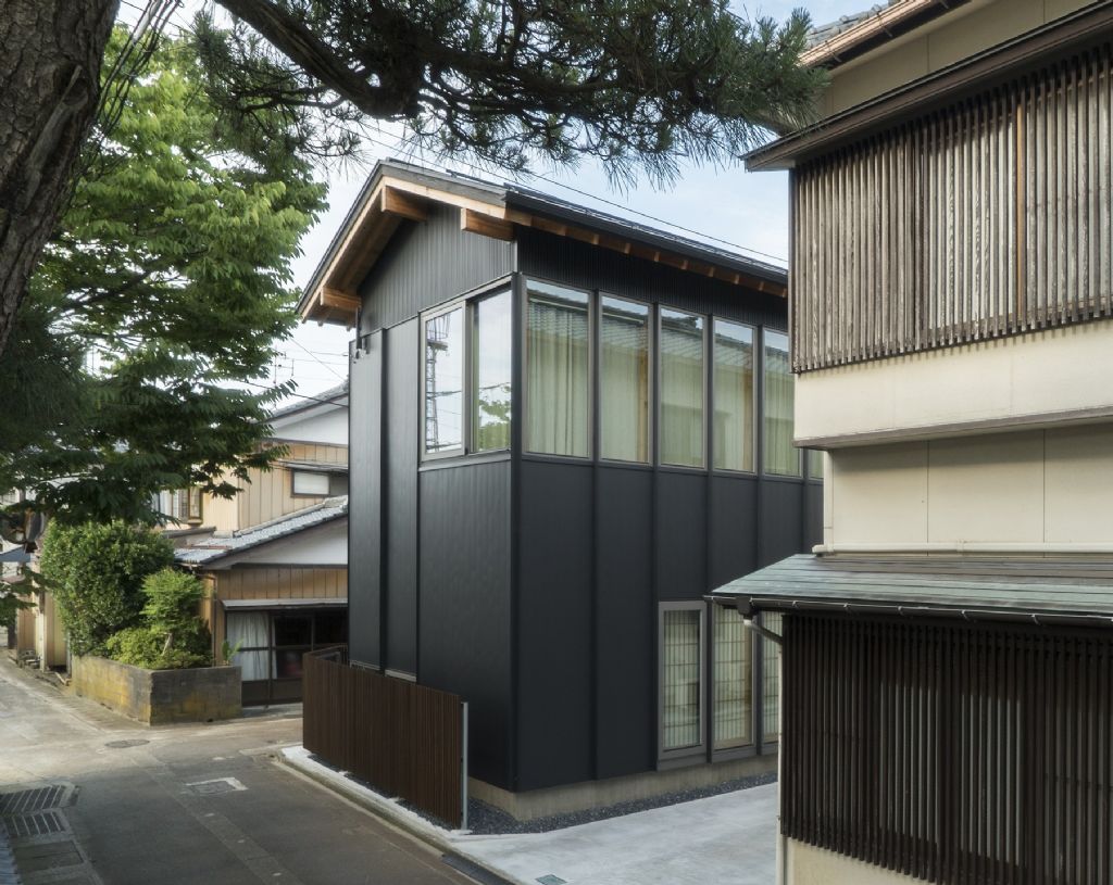 Om op deze beperkte ruimte een maximaal en hedendaags wooncomfort te garanderen werd een licht trapezoïde grondplan ontwikkeld. Het “opbergen” van de ontsluiting langs één zijde en het tegelijkertijd indirect toetreden van licht ook via deze blijkbaar afgescheiden ruimtes via shoji’s vergroot zo de ruimtelijke perceptie. Ook de stompe hoek aan de zuidwestelijke kant leidt tot een gevoelsmatige opening naar de open ruimte buiten het perceel tot het Sanjo Hachiman Shrine, een culturele erfgoedsite waar jaarlijks ceremonies plaatsvinden.