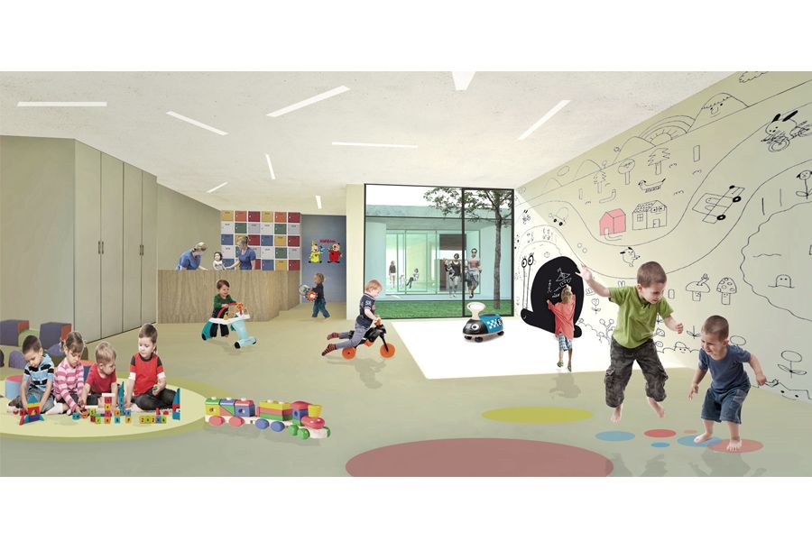 Dit gewonnen wedstrijdproject voor een kinderdagverblijf en bibliotheek moet een ontmoetingsplaats worden op site van het rusthuis in het dorpscentrum van Eksaarde. Er ontstaat op die manier een schakel tussen jong en oud. Het omgevende groen wordt dmv tussenruimtes binnen het gebouw getrokken waardoor het project zich eerder als een paviljoen in een park gedraagt. Dankzij de samenwerking met Steven Vandenborre architecten en het Deense CEBRA architecture ontstond een interessante kruisbestuiving tussen het jonge geweld, volwassen ervaring en een vooruitstrevende internationale visie.