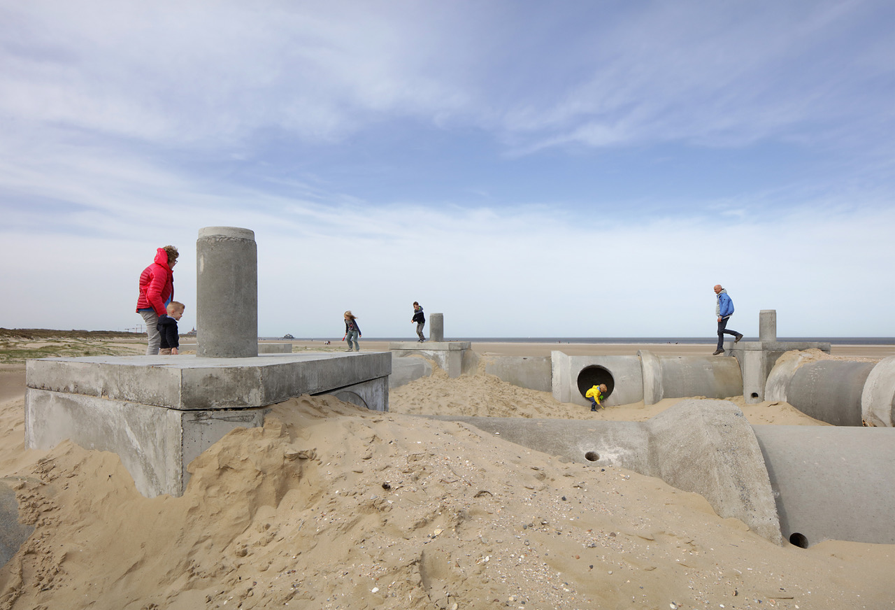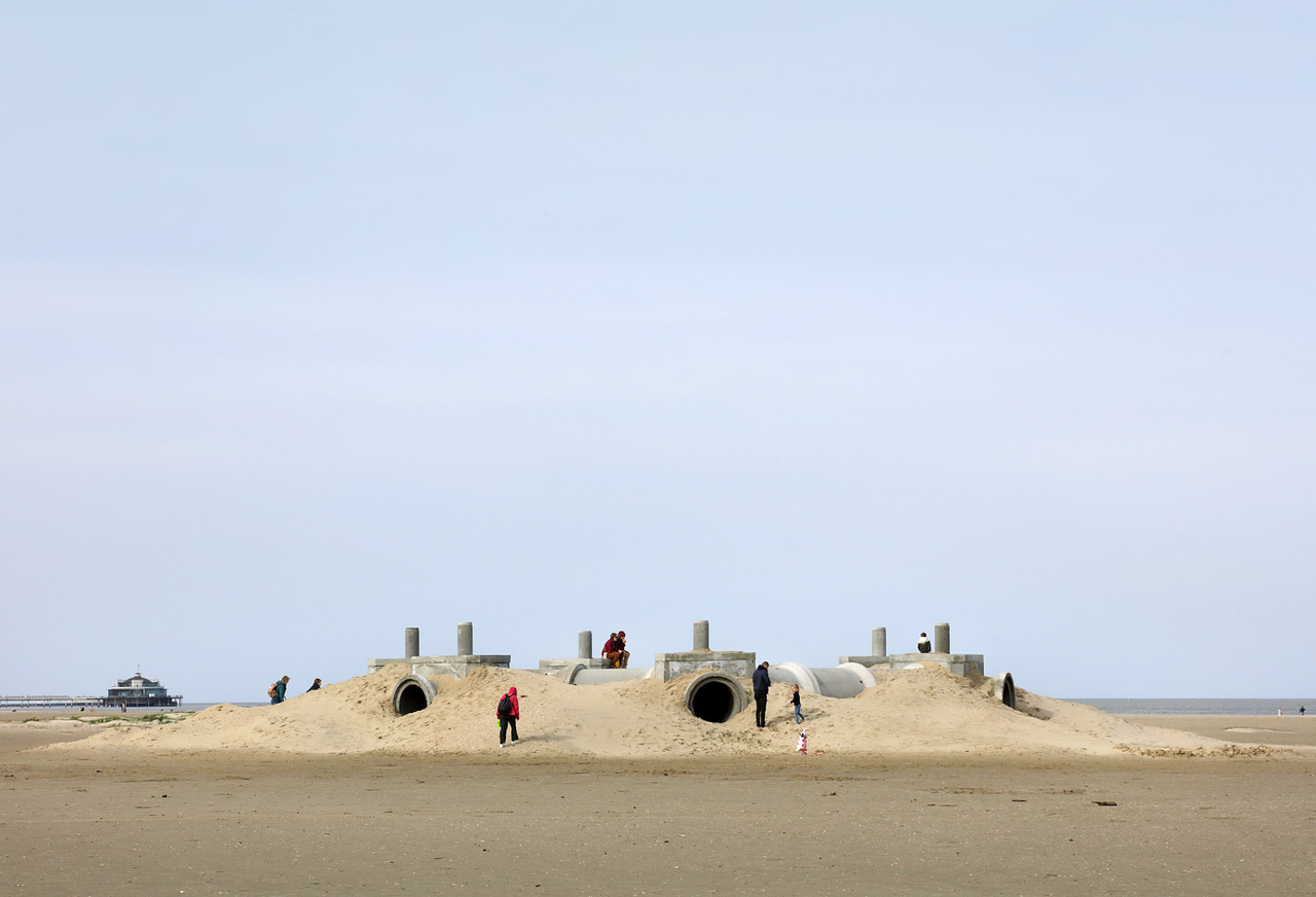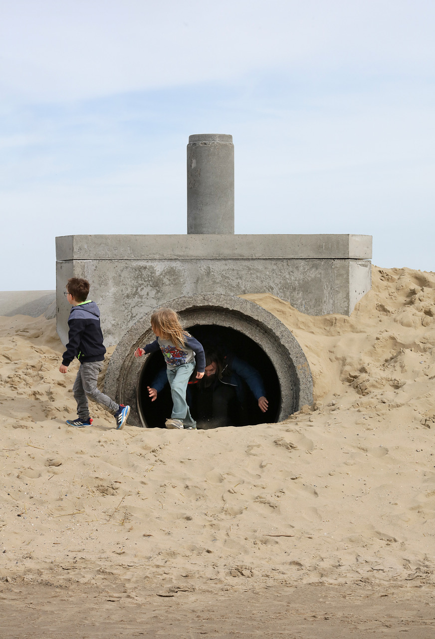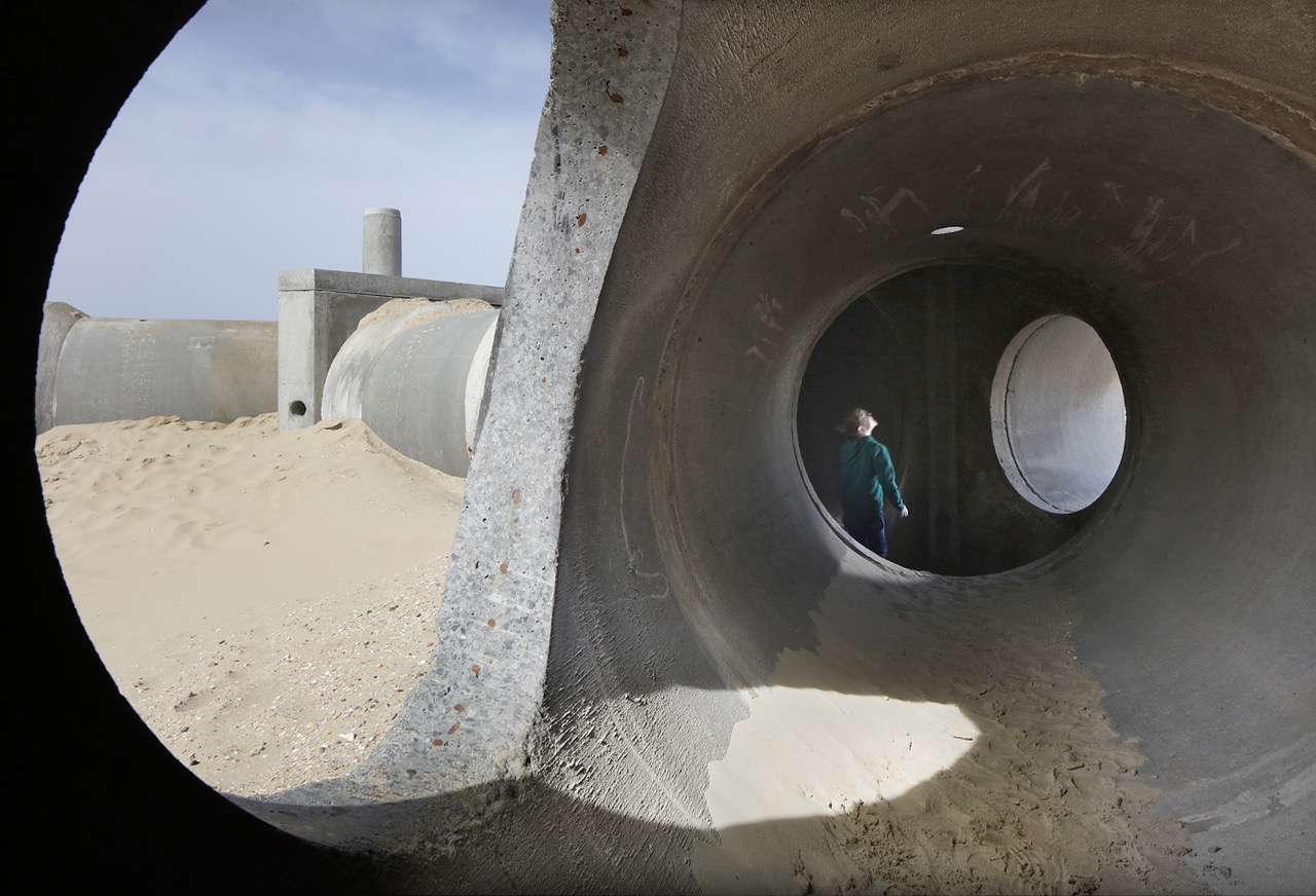 Wie door de circulaire ingangen naar binnen stapt, bevindt zich in een tunnel en ervaart het wisselende spel van licht en schaduw, geluiden en geuren. De bezoeker en de passant worden uitgenodigd om de ruimte te verkennen: te liggen, te reflecteren, te zitten, te spelen en in interactie te gaan met elkaar en met de omgeving. De openingen zorgen voor 'periscopische' beelden van de radicaal contrasterende sites in de industriële haven, de duinen, de zee, de villa's langs de wandelweg... Ze zijn atypisch voor de Belgische Kust en behoren tot het veelzijdige landschap van Zeebrugge.