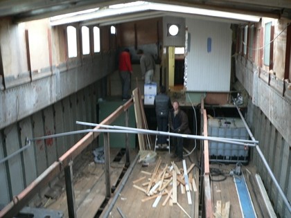 Eerst en vooral wordt de warmtevraag beperkt door een dikke isolatieschil van 30 cm cellulose die doorloopt in de vloer, wanden en plafond. Uniek hierbij is de dampdichte stalen romp van de boot zodat een speciale dampdichte folie aan de warme zijde van de isolatie wordt aangebracht om ervoor te zorgen dat er geen vocht in de isolatie kan dringen en daar inwendig kan condenseren. De vloer is opgebouwd uit losliggende bakken gevuld met isolatie zodat bij problemen met de bodem, de bakken er probleemloos uit kunnen om aan de stalen bodem te kunnen werken.