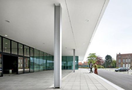 De decentralisatie van het nieuwe politiecommissariaat naar de rand van de stad zal een belangrijke impuls geven aan de toekomstige reconversie van de havensite. Door de zorgvuldige inplanting en dimensionering van het compact, zwevend kantoorvolume schrijft het zich in binnen de structuur en schaal van het voormalig havengebied.