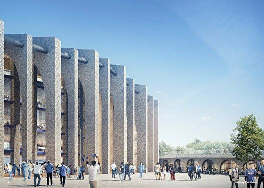 De onregelmatige vorm van het stadion zal voorzien worden van 264 slanke, bakstenen pijlers - geïnspireerd op de gotische architectuur en de nabijgelegen Victoriaanse terrassen - die de hele structuur zullen omwikkelen. Boven het veld zal de onregelmatige vorm oplossen in een cirkelvormige piek, aflopend naar het midden in een rechthoekige opening.