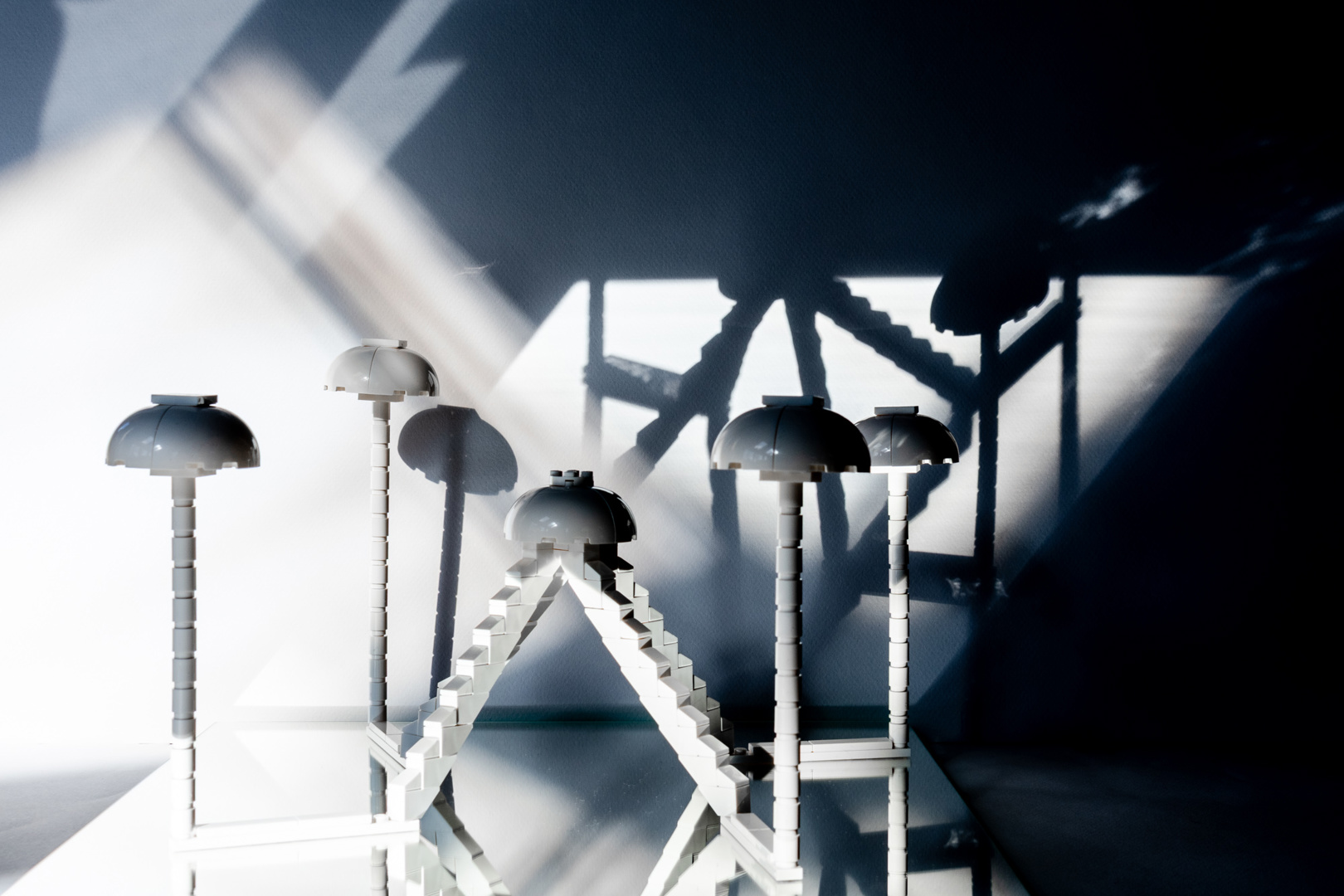 Mijn LEGO-installaties staan soms op een spiegel waardoor ze extra ruimte krijgen. Soms staan ze voor een gekleurde, zwarte of witte achtergrond waardoor ze contrasteren, vervagen…