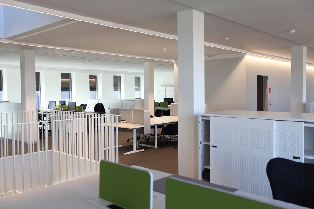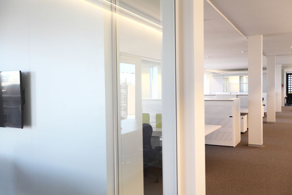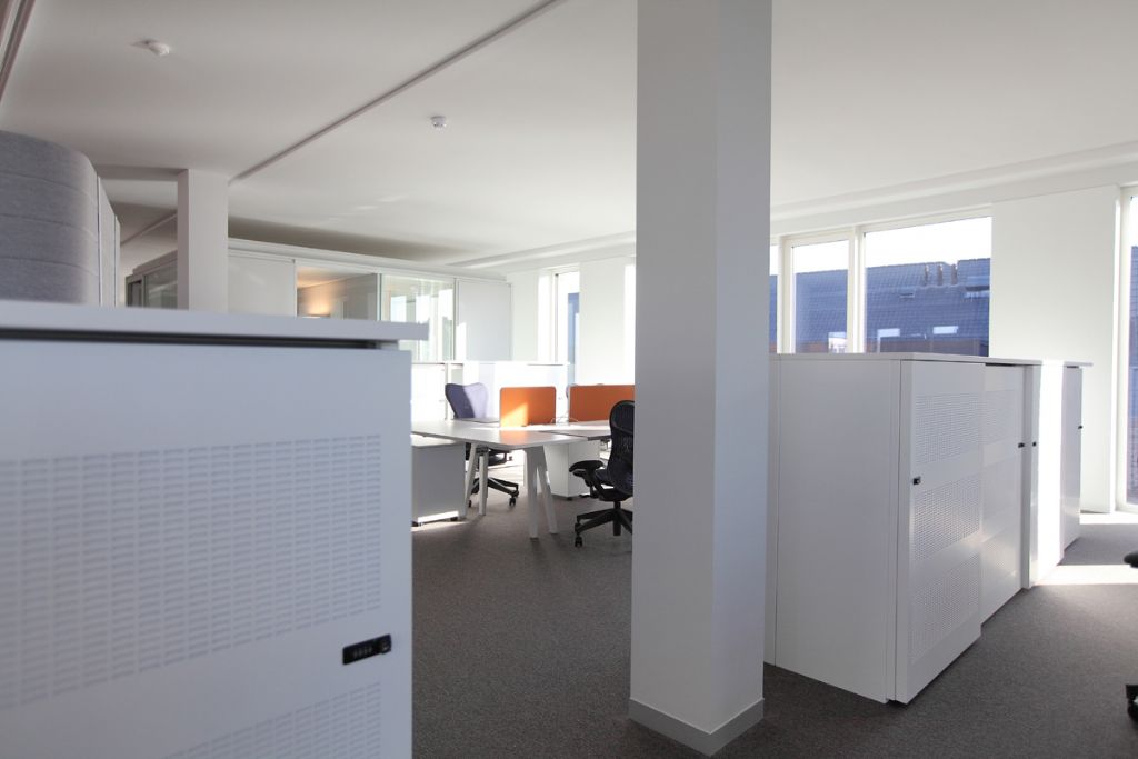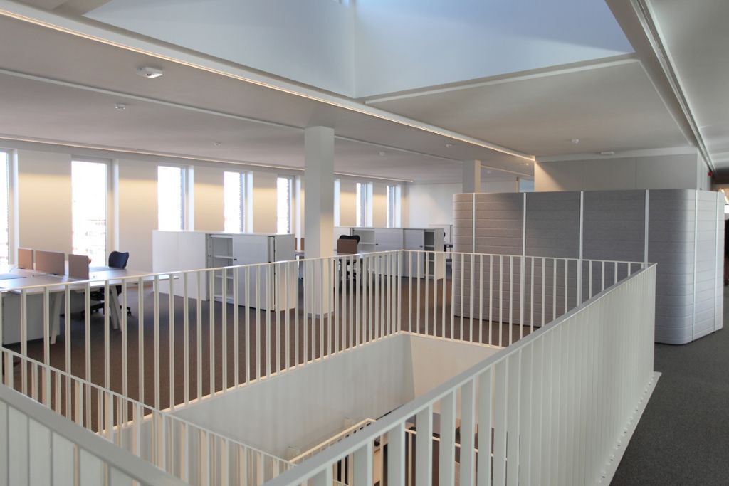 De open kantoren worden geklimatiseerd met behulp van betonkernactivering (BKA). Hierdoor kon het akoestisch welbevinden van de gebruikers niet worden gerealiseerd door middel van een verlaagd geluidsabsorberend plafond dat de thermische werking van de BKA zou belemmeren. Systemen met baffels en plafondeilanden werden eveneens geweerd omdat zij enerzijds de ruimtelijkheid zouden verstoren en anderzijds de nagalm onvoldoende zouden beheersen.