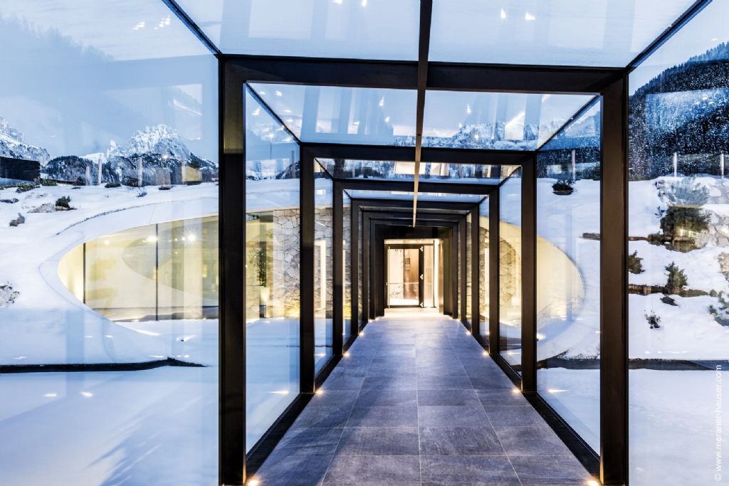 In het geval van het Alpenroyal hotel in Selva di Val Gardena, werd Perathoner, vanwege het feit dat dit complex in de Dolomietenregio ligt (Werelderfgoed van Unesco), gedwongen om na te denken over welke elementen de werkzaamheden zouden kunnen beïnvloeden, om zo tot op maat gemaakte oplossingen te komen die perfect in het landschap passen.