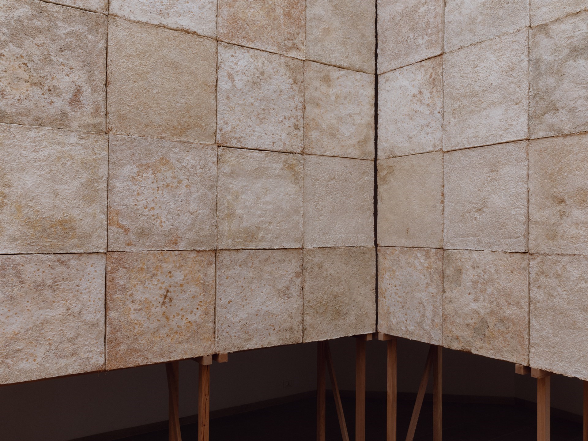 In het Belgische paviljoen pakken de architecten van het Brusselse bureau Bento i.s.m. BC materials uit met ‘In Vivo’, een installatie rond regeneratieve architectuur. Met tegels gemaakt uit mycélium, oftewel paddenstoelen, tonen ze dat we ook met levende materialen kunnen bouwen.