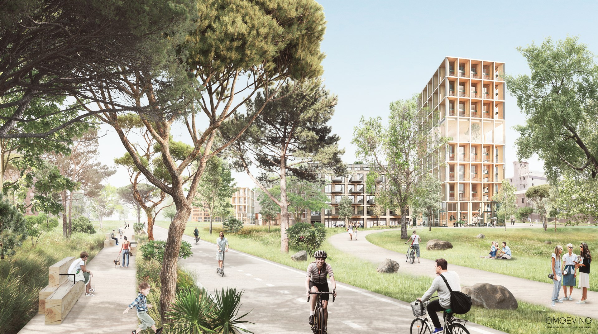 Nieuwe fiets- en wandelpaden brengen inwoners via de groene nerven in 15 minuten tot het centrum van de stad. Daarmee zet ook het zuidelijke deel van Valencia de modal shift in naar minder autoverkeer. De drie ecowijken zijn verknoopt met dit groenblauw mobiliteitsnetwerk en staan aan het front van de klimaattransitie. De herontwikkeling van dit stadsdeel zet volop in op duurzame mobiliteit, klimaatadaptie, biodiversiteit, CO2 neutraliteit, circulariteit en betaalbaar wonen. Valencia doopte het ambitieuze stadsontwikkelingsproject ‘The green corridor’, een naam die de ontwerpers van OMGEVING met hun winnende voorstel alle eer aandoen.