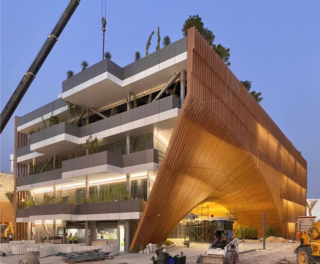 Met de aftrap van de wereldexpo in Dubai op 1 oktober is ook het Belgisch paviljoen zopas voltooid door aannemers BESIX en Vanhout. De zogenaamde ‘Green Ark’ - ontworpen door het Brusselse assar en de Belgische ontwerper Vincent Callebaut – is een houten boog bekleed met meer dan 2.500 lokale planten die CO2 opslaan en de binnentemperatuur verlagen.