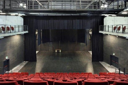 De zaal, die gevangen zit in een lichtdoos, weerkaatst de eigen aan het schouwspel zijnde duisternis dankzij zijn sombere houtwerk, dat tegelijkertijd ook de akoestiek verbetert. De scène leent zich door z’n grote omvang (de helft van de totale oppervlakte) uitstekend tot grootse dans –en theatervoorstellingen. De inschuifbare tribune garandeert een zekere flexibiliteit in gebruik: van vierhonderd zitplaatsen tot zeshonderd staanplaatsen, naargelang de aard van de voorstelling. Op zich neemt de grote theaterzaal relatief weinig ruimte in. Door z’n toegankelijkheid geeft het cultureel centrum sommige delen van de ingenomen publieke ruimte terug aan de stad.