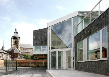 In onze reeks over de Belgische Prijs voor Architectuur en Energie brachten we al een artikel over de lokalen voor de Blankenbergse jeugdbewegingen waarmee Els Claessens en Tania Vandenbussche de architectuurprijs in de categorie ‘Niet-Residentieel Publiek’ in de wacht sleepten. Wat we er toen niet bij vertelden, was dat Claessens en Vandenbussche deze eer moesten delen met L’Escaut-Weinand, een tijdelijke vennootschap bestaande uit L’Escaut Architectures en studiebureau Weinand. Zij werden met hun ‘Espace Culturel Victor Jara’, een gloednieuw cultureel centrum in het hart van Soignies, verkozen tot ‘tweede laureaat’.
