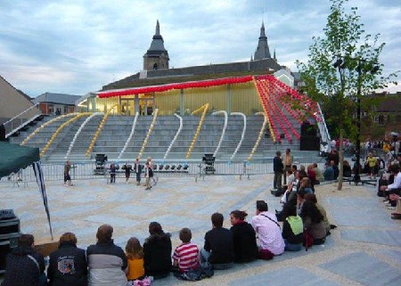 Het collectief is verder gegaan dan oorspronkelijk de bedoeling was om de kenmerkende context ook in de inrichting van het gebouw te vertalen. Twee facetten van de culturele dynamiek komen aan bod: enerzijds de institutionele cultuur (door de grote zaal binnenin het gebouw), anderzijds de populaire cultuur (door toegankelijkheid van het gebouw en de buitentrappen waar men straatfeesten en andere evenementen kan organiseren). Op deze manier vermijdt L’Escaut-Weinand dat het gebouw een gesloten doos wordt. De volledig beglaasde foyers van de zaal zelf strekken zich uit langs de gevels en transformeren het schijnbaar gesloten volume in een open ruimte die de stad verlicht als de avond valt.