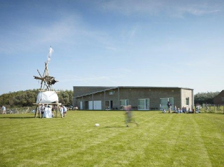 Domein Hoeve de Sol, zo heet het project van Claessens en Vandenbussche. Ze toverden een oude hoeve om tot lokalen voor de drie plaatselijke jeugdbewegingen. Elke vereniging heeft toegang tot eigen lokalen, keukens, sanitair en opslagruimtes. Buiten een verschil in grootte (de VVKSM telt immers dubbel zoveel leden als de KSA of de Chiro) zijn de drie gebouwen quasi-identiek. De architecten vonden het belangrijk om enige samenhang te bewaren: “We wilden geen drie onderscheiden gebouwen maken. We ontwierpen één langgerekt gebouw dat slingert tussen de perceelsgrenzen. Het gebouwdeelt het terrein, samen met de uitbreiding van het Zeebos, in vier: een eigen buitenruimte voor elk van de drie jeugdbewegingen en een gemeenschappelijke koer rond de bestaande poel. De gewenste scheiding tussen de drie verenigingen is niet expliciet, maar ze is er wel,” aldus Els Claessens.