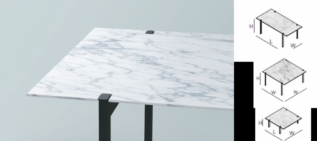 Deze minimalistische tafelcollectie waarbij de schoonheid en het pure karakter van natuursteen wordt verenigd in een eigentijds ontwerp. De reeks wordt getypeerd door strakke lijnen en een tijdloos design gecombineerd met de pure elegantie van een tafelblad in natuursteen.