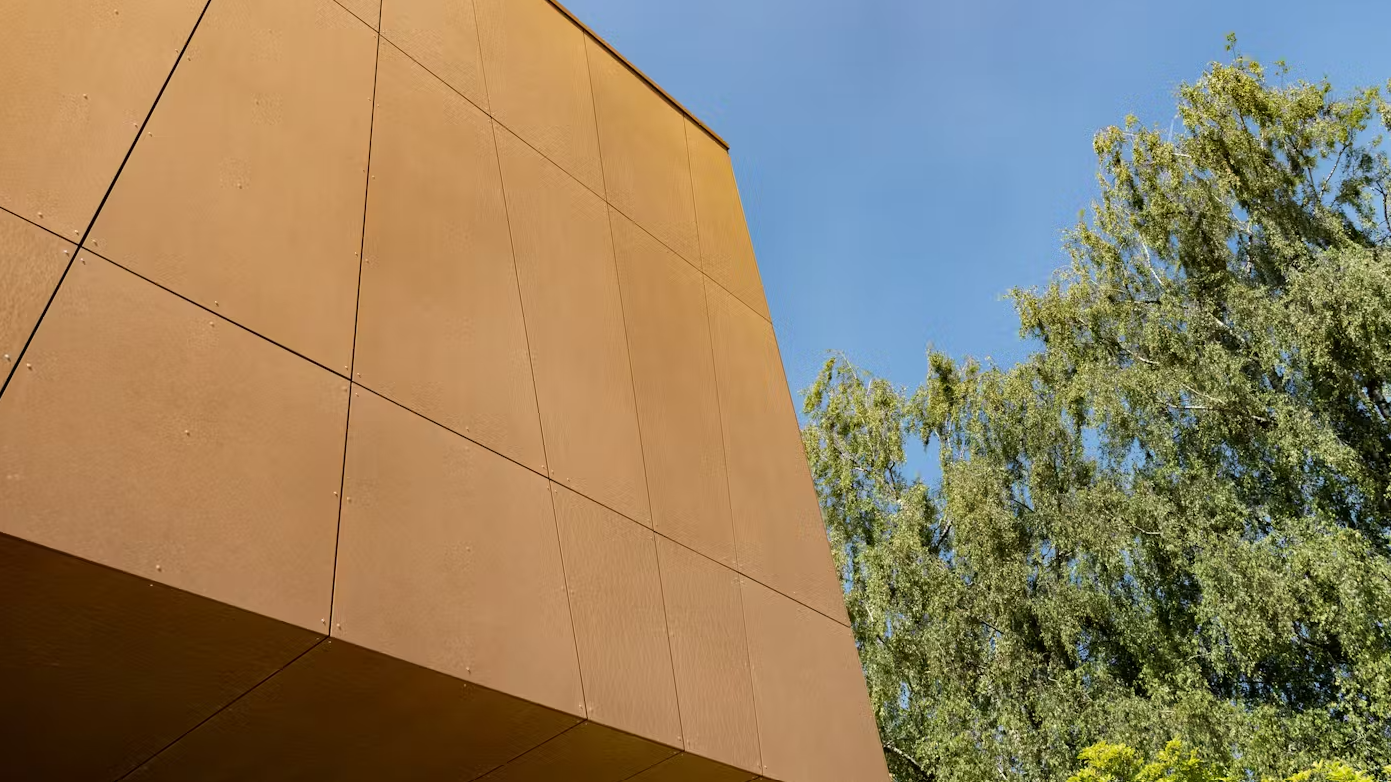 Rockpanel-panelen zijn zeer duurzaam, garanderen een optimale resistentie tegen de weerselementen en voldoen aan de eisen voor publieke gebouwen, terwijl ze toch licht zijn. Dit laatste maakt dat ze gemakkelijk te installeren zijn, vooral op bestaande structuren waar gewicht een belangrijke uitdaging is. Hun evoluerende visuele effect is een andere troef: door licht op te vangen en te weerkaatsen naargelang de invalshoek en lichtintensiteit, veranderen ze subtiel van uitzicht naarmate de dag vordert, waardoor een dynamische gevel ontstaat die harmonieus opgaat in de omgeving en tegelijk een sterke architecturale identiteit uitstraalt.