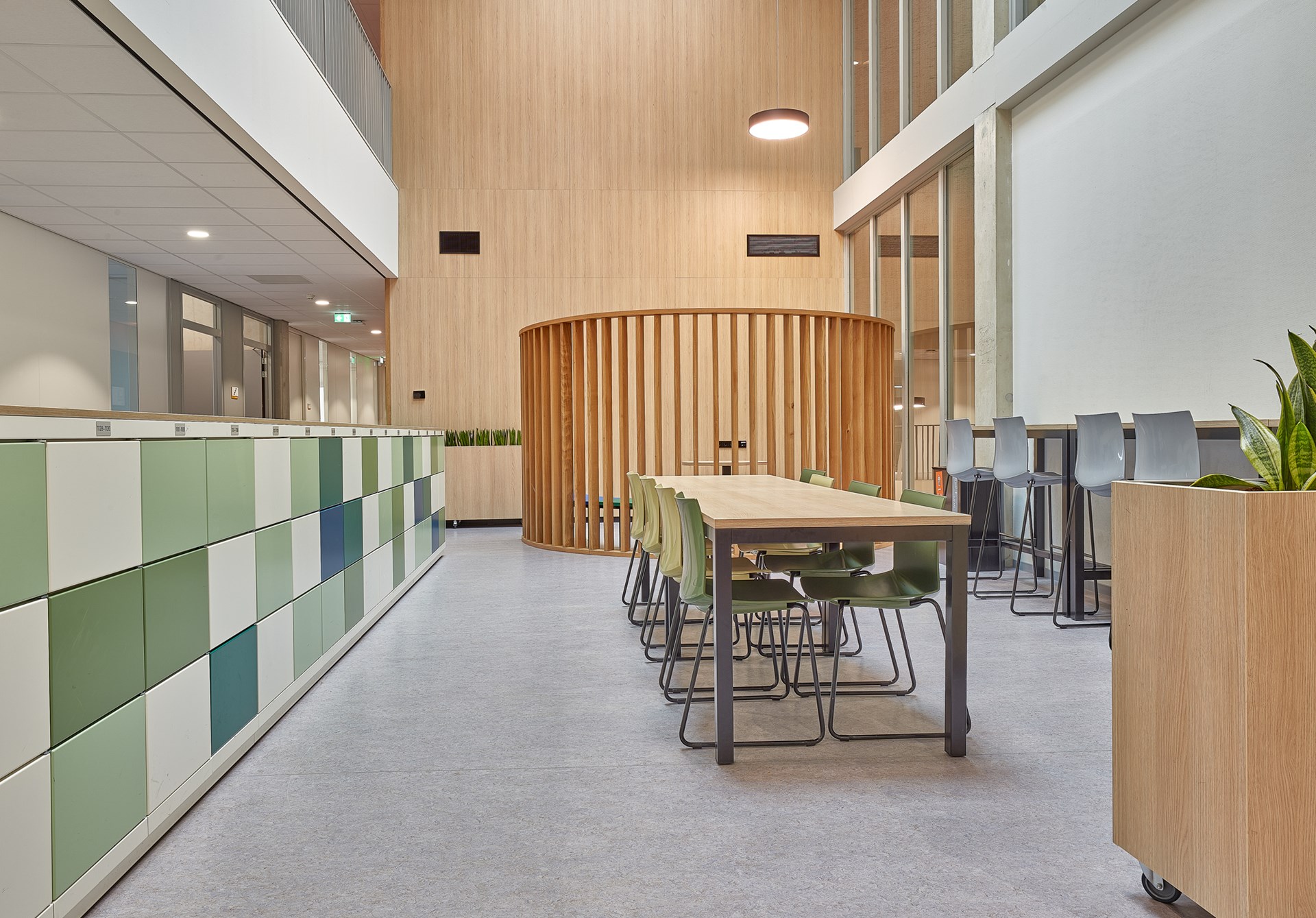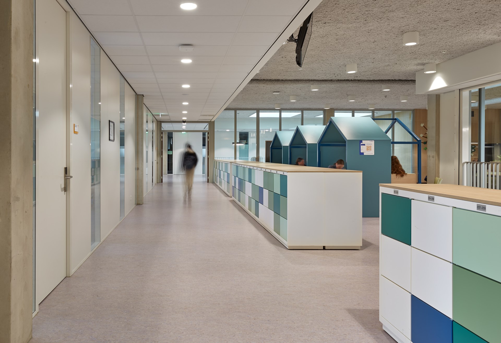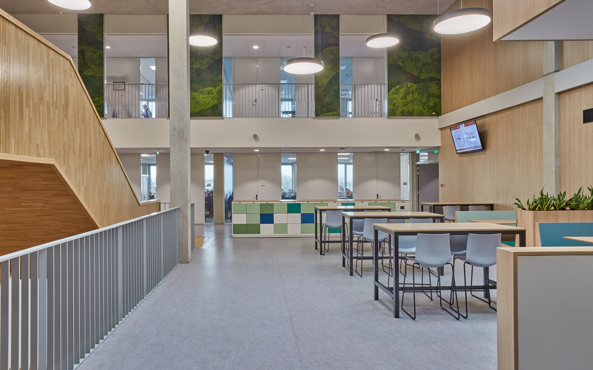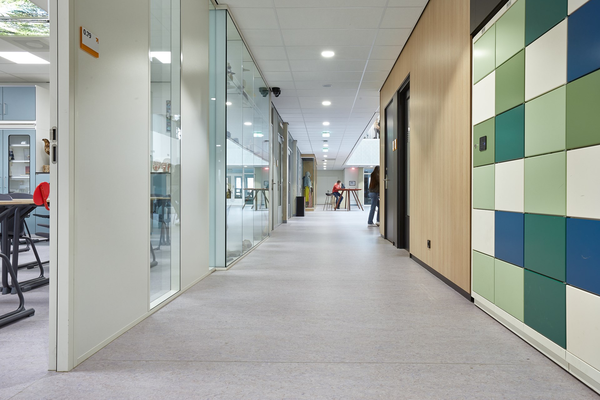 In zowel gebouw Noord als gebouw Zuid van de Beroepscampus in Middelharnis ligt DLW Linoleum (Foggy Blue, 0056) van Gerflor op de vloeren van de algemene ruimtes en theorielokalen. DLW Linoleum bestaat voor 98 procent uit natuurlijke grondstoffen (bio-based en mineralen) en is gecertificeerd door vele eco-labels, waaronder de Blauwe Engel, M1, Floorscore en Cradle to Cradle Silver.