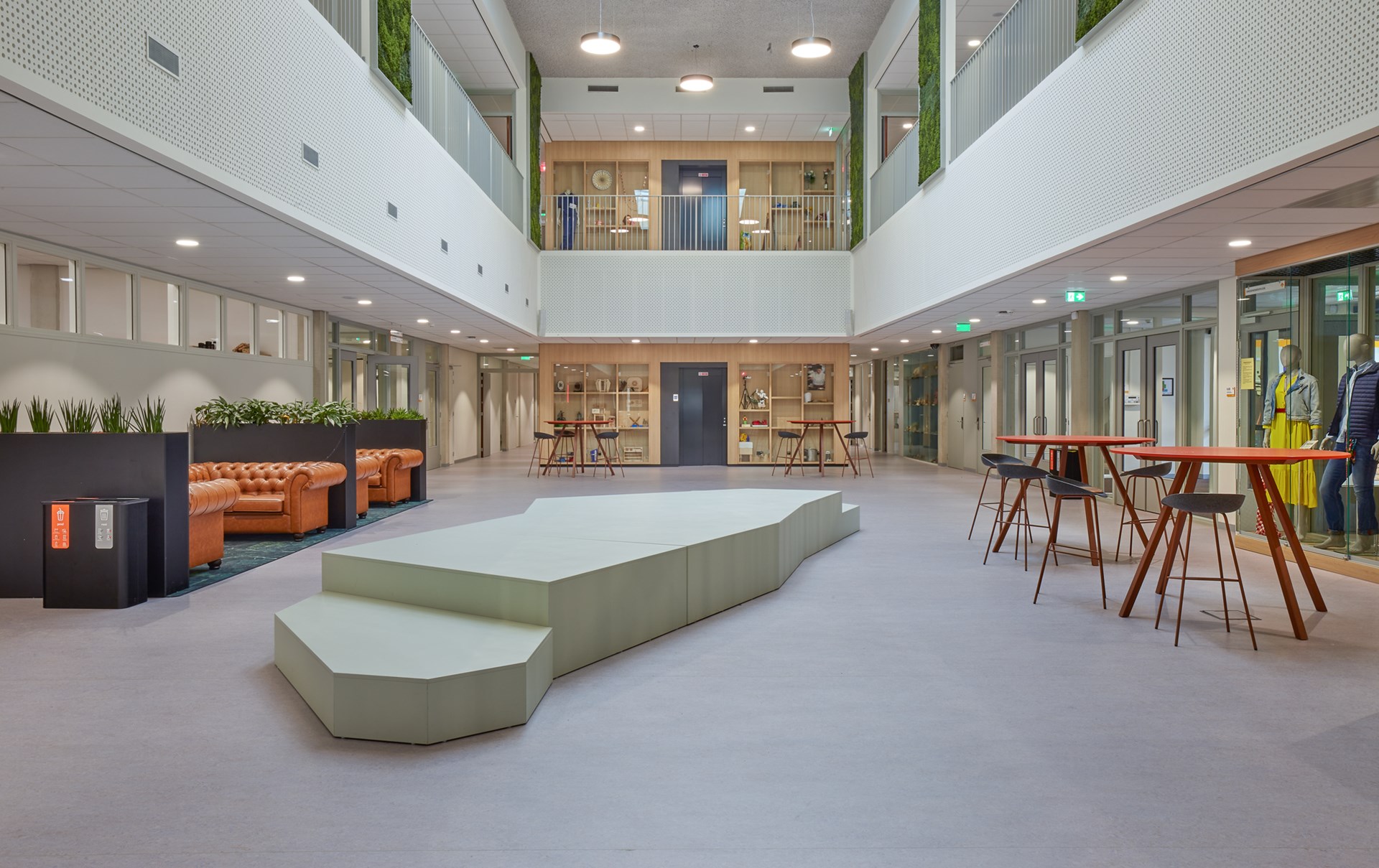 Wat betreft onderhoud maakt de vloer volgens Vogelaar ook de beloftes waar. “Toen de vloer net lag, gebruikte de schoonmaak te veel schoonmaakmiddelen om de vloer te reinigen, maar dat wisten we toen nog niet. Er ontstond een soort laagje op de vloer, waardoor de vloer een doffe uitstraling kreeg en alle vuil juist extra zichtbaar werd. Toen we hierover contact opnamen met Gerflor kwamen ze meteen langs om testjes te doen. Zo zagen ze dat er niet het juiste schoonmaakmiddel werd gebruikt. Er werd ons geadviseerd om de vloer alleen met neutraal reinigingsmiddel schoon te maken. En dat werkt! De vloer ziet er perfect uit.”