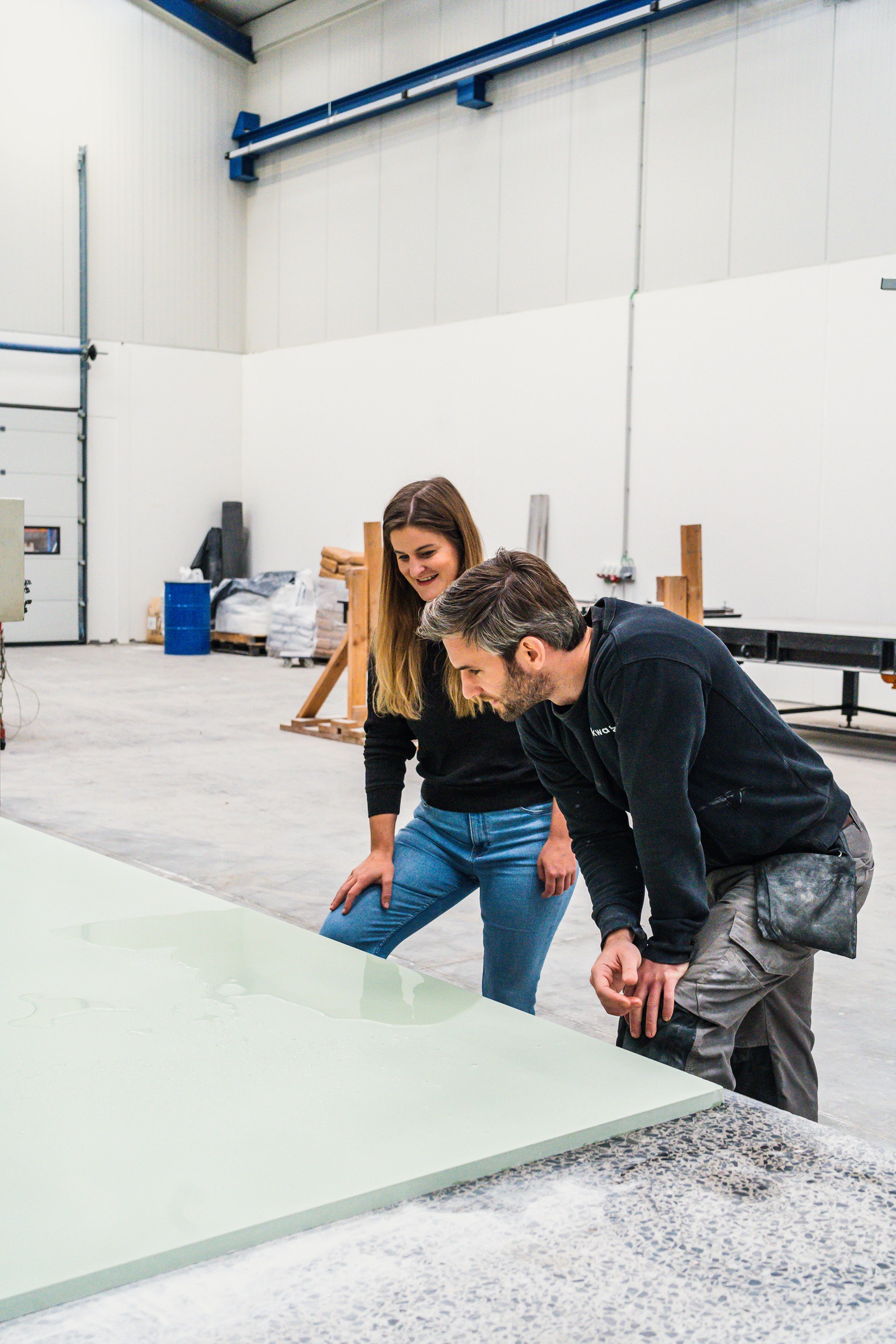 Vanuit deze unieke kennis ontstaat de droom om dunne, beton platen in hippe kleuren op de markt te zetten, gemaakt van 100% natuurlijke materialen, geproduceerd in België en met grondstoffen die voldoende voorradig zijn in de aardkorst. Kwantz kiest er ook heel bewust voor om geen synthetische harsen of lijmen te gebruiken.