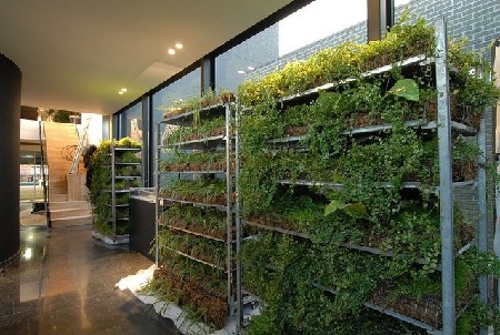 Dit volledig recycleerbare systeem heeft een zeer laag waterverbruik, dankzij de toepassing van Eco Cert, een anti-bacterieel, organisch substraat dat tot 15 x zijn eigen gewicht in water opneemt. De irrigatie en bemesting gebeurt automatisch en het geheel wordt bijgestuurd met kunstmatige belichting om het optimale resultaat te bekomen.