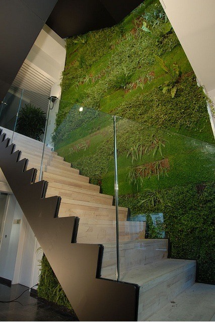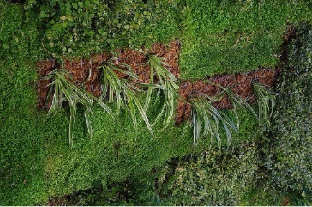 De vegetatie is nagenoeg dekkend bij plaatsing doordat de vegetatie gedurende 6 maanden in hangende positive voorgekweekt werd. Voor dit project werd een mengeling van groenblijvende bodembedekkers en enkele tropische varens en kamerplanten toegepast .