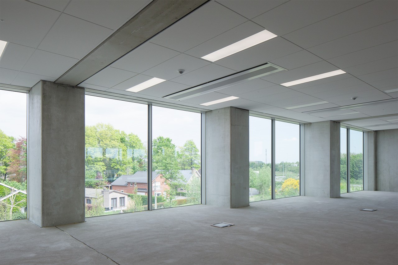 De bufferzone wordt op een natuurlijke wijze geventileerd en gekoeld zodat de kantoorunits gespaard blijven van de zonnewinsten. Het gebouw werd volledig opgetrokken in prefabbeton waarbij grote aandacht is besteed aan de betonkwaliteit van de zichtelementen, zonder het industriële karakter ervan te ontkennen. Ook de gevels werden in industrieel beton opgetrokken maar komen door hun detaillering los van de industriebouw. Het BEO-veld met 63 boringen staat in voor de verwarming en koeling van het gebouw en wordt elektrisch gevoed door middel van zonnepanelen.