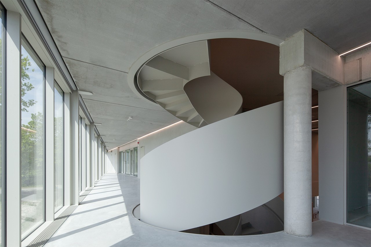 Binnen een compact budget werd gezocht naar maximaal effect door een efficiënt ruimtegebruik binnen een zeer rationele structuur. Er werd ingezet op een aantal bijzondere architecturale elementen zoals de trap, balustrades, bufferruimte, gevelproporties en gevelaansluitingen die de uitstraling van het gebouw bepalen. De robuuste betonstructuur is tegelijk de afwerking.