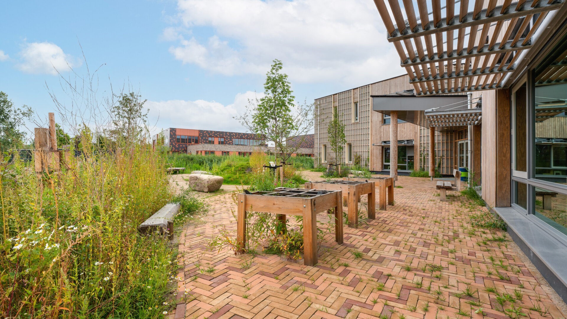 Kinderen vormen hun wereldbeeld steeds vaker via digitale schermen. Die ontwikkeling heeft diepgaande implicaties. Misschien wel de belangrijkste daarvan is dat hun connectie met de natuur, cruciaal voor het ontwikkelen van respect voor die natuur en dus van een ecologisch bewustzijn, verdwijnt. Daar wil basisschool De Verwondering in Almere iets aan doen. Enerzijds door biofiele principes toe te passen in de lespraktijk – de leerlingen kweken op school bijvoorbeeld hun eigen groenten en fruit en zorgen er voor vissen, cavia’s en kippen, anderzijds met haar biofiele ontwerp van binnen- en buitenruimtes.