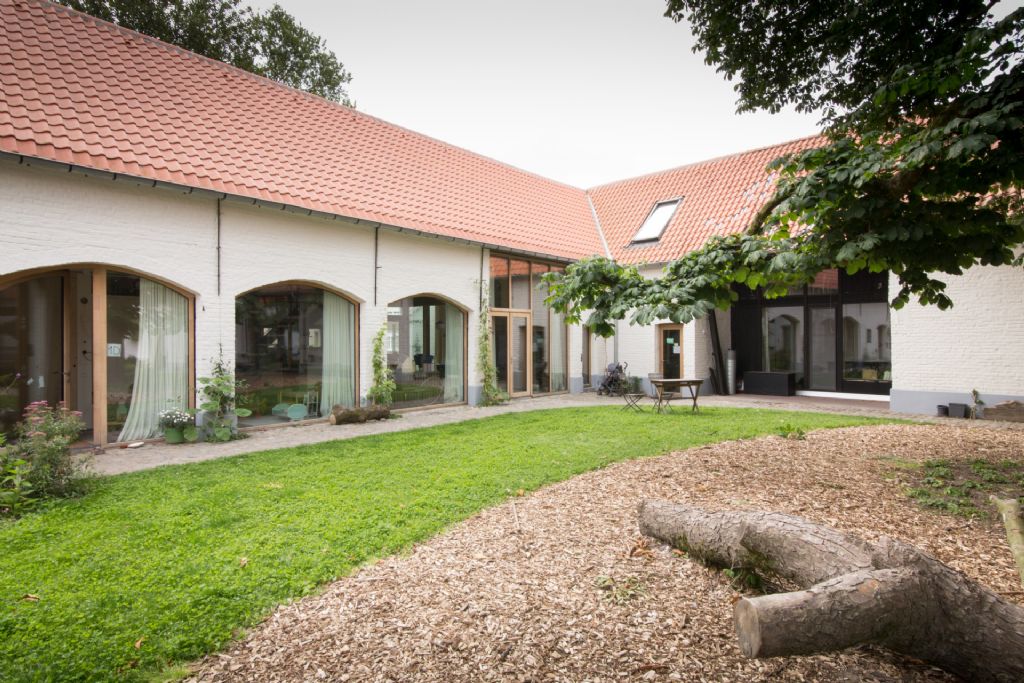 Omschrijving van het project: Zeven jonge gezinnen sloegen de handen in elkaar en maakten van deze 300 jaar oude hoeve met jeneverstokerij, wagenhuis, herenboerderij, schuren, stallen… een echte woondroom. Elk gezin heeft nu een eigen compacte woning, met alle voorzieningen en een stuk private tuin. Daarnaast zijn er een aantal gemeenschappelijke ruimtes: een binnenkoer, een (fietsen)berging, een gezamenlijke parking aan de zijkant, een speelruimte voor de kinderen, een werkatelier, gezamenlijk waterbeheer en een grote tuin met boomgaard, moestuin, schuur en zwemvijver. Het laten herleven van de erfgoedwaardes, sociaal duurzaam wonen en ecologisch bouwen: dat was de missie. Zowel het concept, de materialen en de technieken tonen het beste van duurzaam bouwen: de gemeenschappelijke pelletketel die centraal warmte opwerkt voor een collectief warmtenet, de ecologische binnenisolatie met cellulose of kalkhennep, de cementarme vloeropbouw met schelpen of glasgranulaten, de 3-voudige beglazing, de balansventilatie met warmteterugwinning, traditionele kalktechnieken en leempleisters… De toegepaste natuurlijke afwerkingsmaterialen zoals leem- en kalkpleisters sluiten goed aan bij de historische materialen. Niet alleen bouwfysisch maar ook naar gevoel en sfeer.
