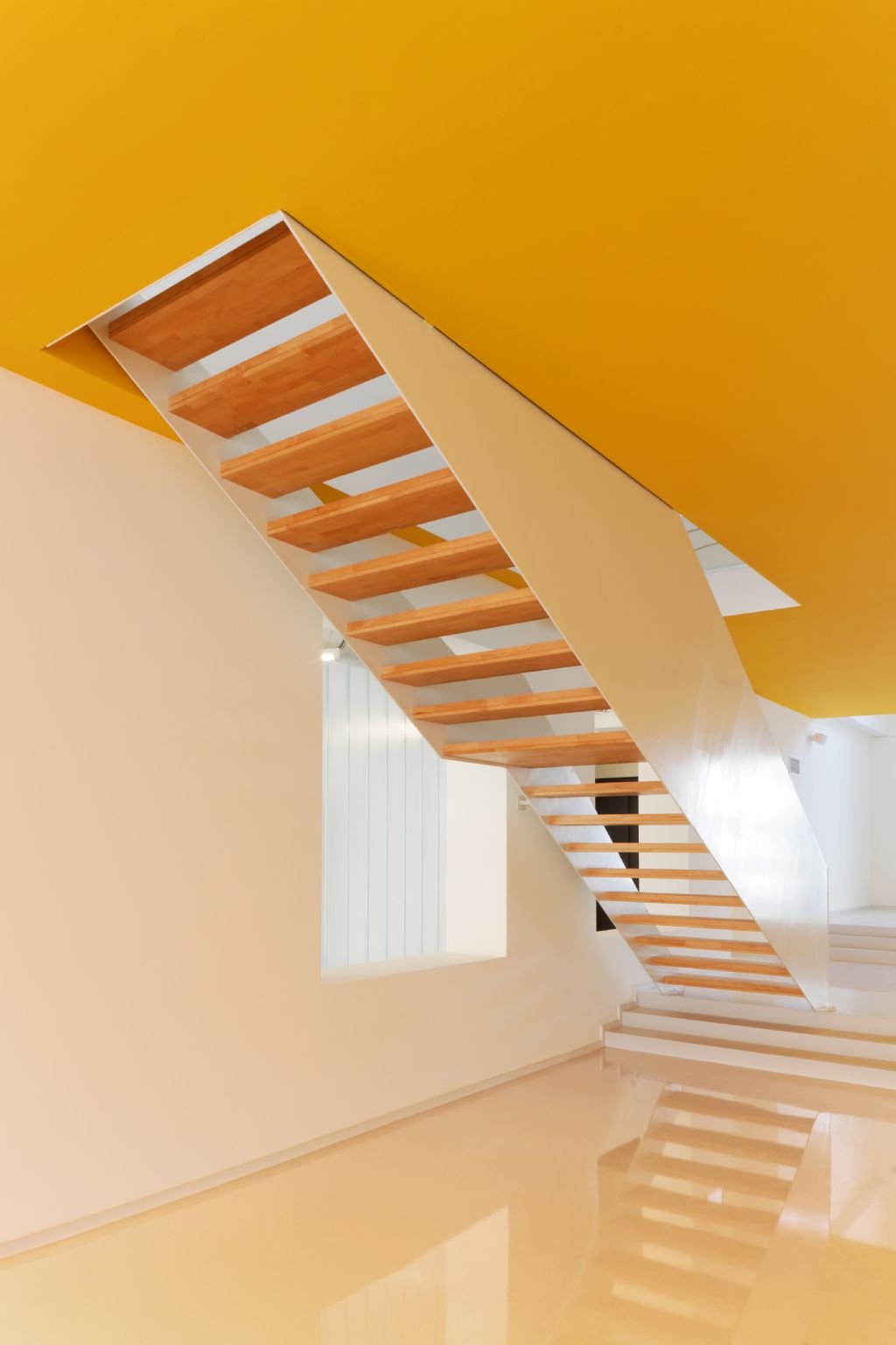 De oriëntatie van de site en de bezonning zijn bepalend voor de energetische kwaliteiten van en de natuurlijke lichtinval in het gebouw. “In renovatieprojecten zijn deze factoren al grotendeels vastgelegd voor de buitenschil van het gebouw, vandaar dat we ons haast obsessief hebben toegespitst op de interne (re)organisatie. Bij de inplanting van de verschillende functies hebben we steevast rekening gehouden met de oriëntatie, de natuurlijke lichtinval en de rechtstreekse invloed van de zonnestralen”, laten de ontwerpers optekenen.