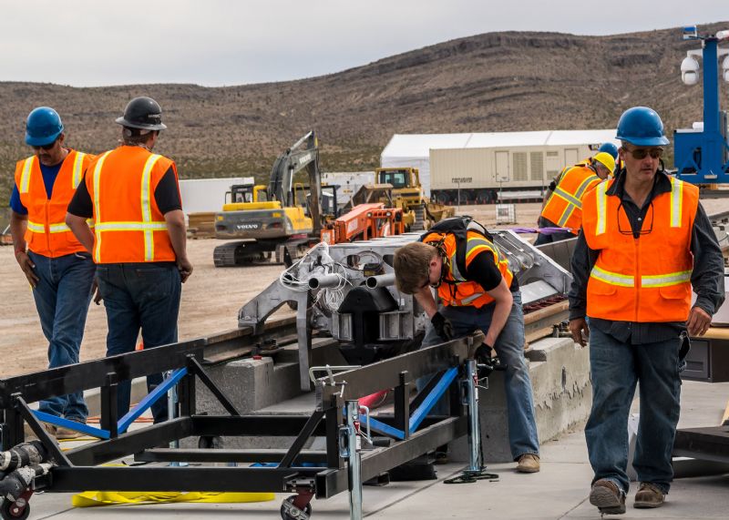De test vond plaats in de Mojave woestijn, 35 km ten noorden van Las Vegas. Ze werd uitgevoerd door Hyperloop One, een van de verschillende bedrijven die momenteel onafhankelijk werken aan de ontwikkeling van de technologie nadat de vroege plannen van Elon Musk en diens bedrijf SpaceX werden vrijgegeven. Hyperloop kondigde tevens een groep creatieve partners aan, waaronder het Deense architectenbureau BIG van Bjarke Ingels en de ingenieurs- en architectenbedrijven AECOM en Arup, die de technologie helpen omzetten naar een infrastructuur.