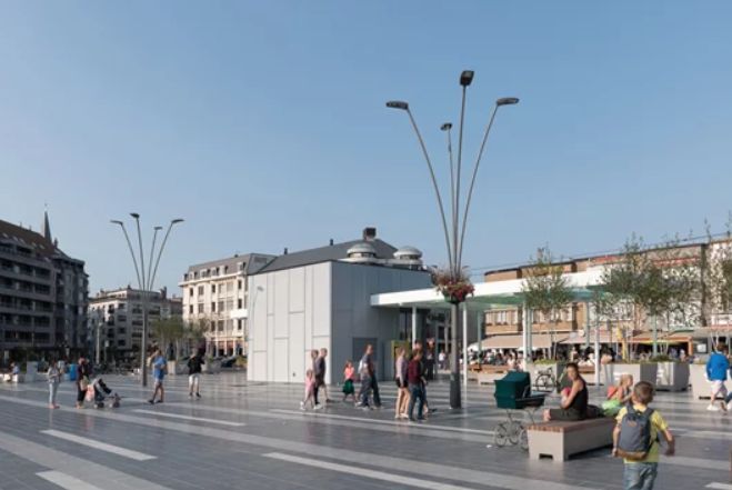 De stad koos om een open plein aan te leggen met genoeg ruimte voor de horeca. Het modulaire ontwerp met verplaatsbare beplanting en straatmeubels laat toe om het plein gemakkelijk om te vormen. In de zomer wordt het voor evenementen gebruikt, in de winter is het een plek om rustig te ontspannen.