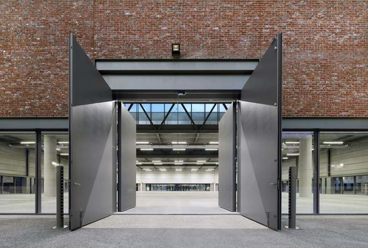 De flexibiliteit van het gebouw gaat heel ver. “Een beursruimte wordt vaak als een gesloten doos opgevat, maar dat vinden wij een gemiste kans om er meer uit te halen voor de buurtbewoners, we zitten immers in het historisch centrum van Brugge. Vandaar dat we het gelijkvloers rondom volledig beglaasd hebben. Wanneer er geen beurzen zijn, is het mogelijk om die glazen buitenwanden open te zetten, zodat je een publiek overdekt plein krijgt voor de buurt. Dat was voor ons een belangrijk uitgangspunt in het concept.”